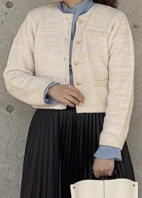 ROPÉツイードニットショート丈カーディガン/イージーケアキナリ / F¥37,400レビュー身長161㎝で普段38サイズを着用しています。