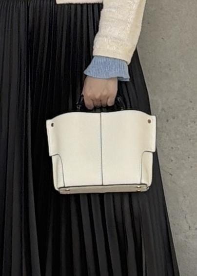 バンブーハンドルと、取り外し可能な付属ショルダーの2WAYの持ち方が可能で洋服に合わせて持ち方を変えていただけます。底鋲付きでしっかりと自立するのも嬉しいポイントです。