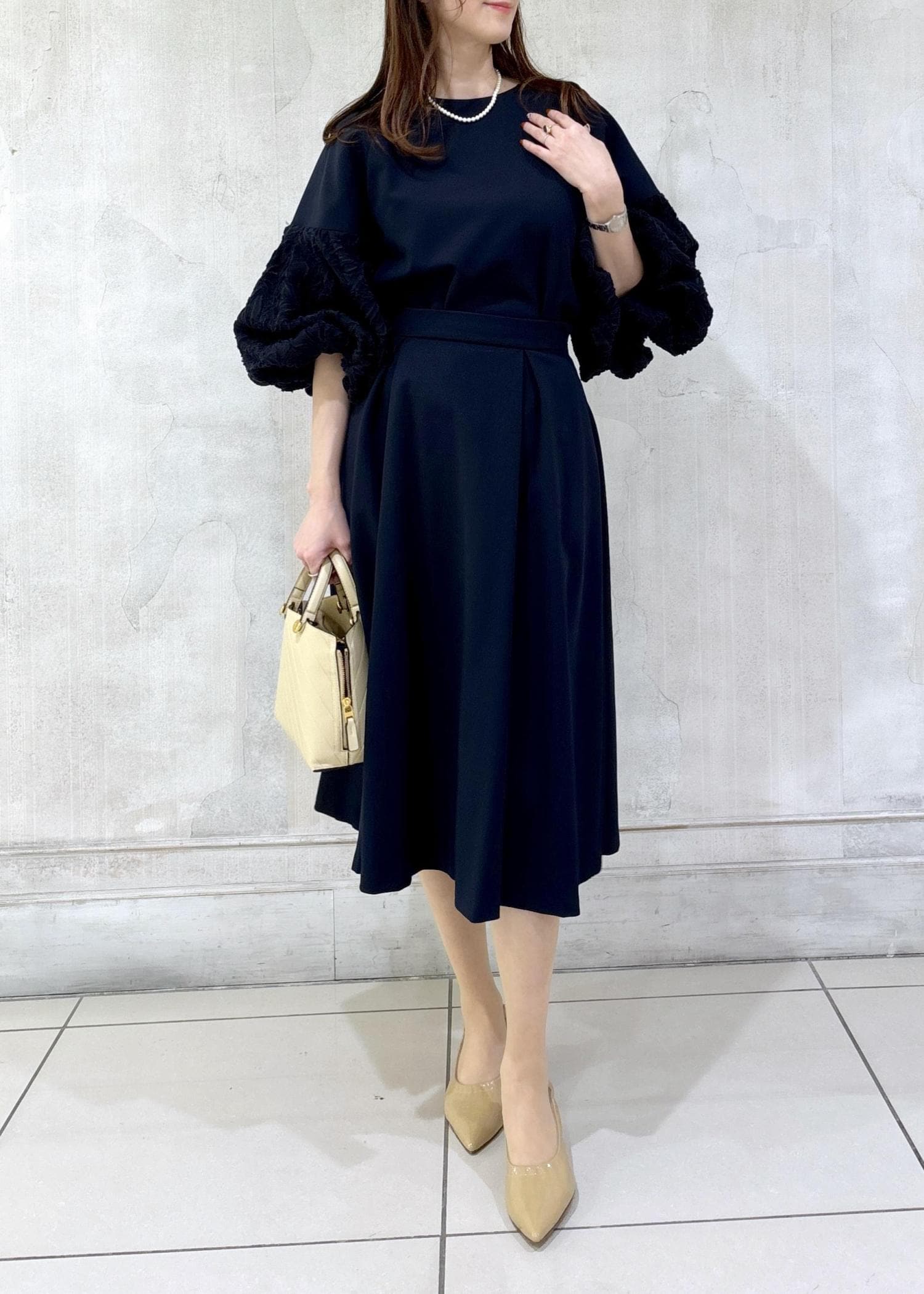 上品バルーンスリーブで叶える、大人の洗練エレガンス。