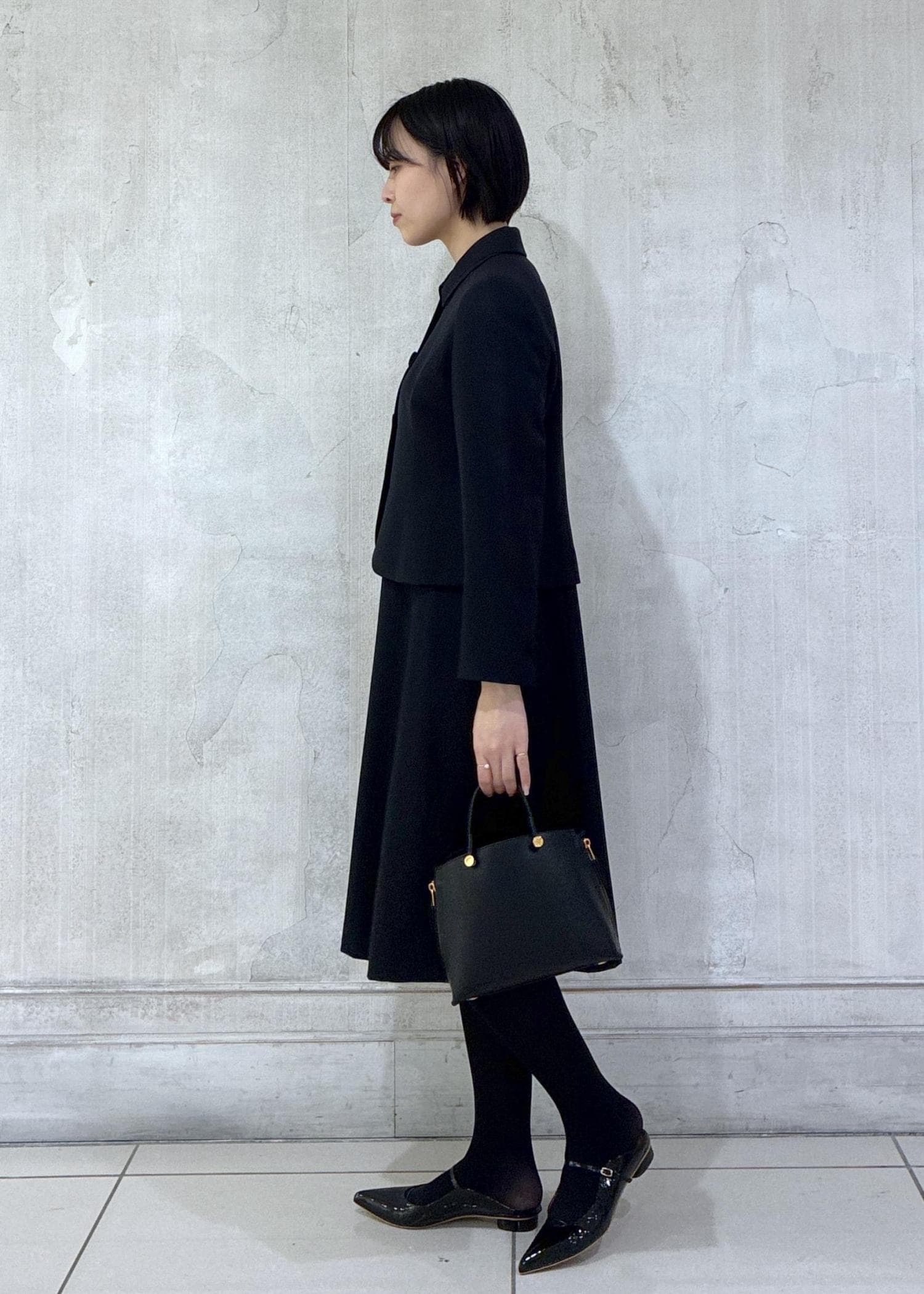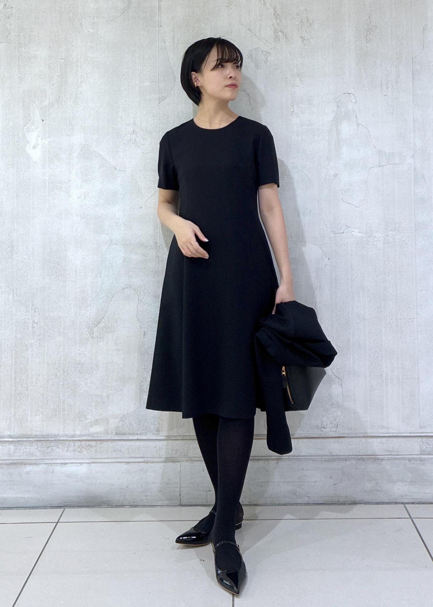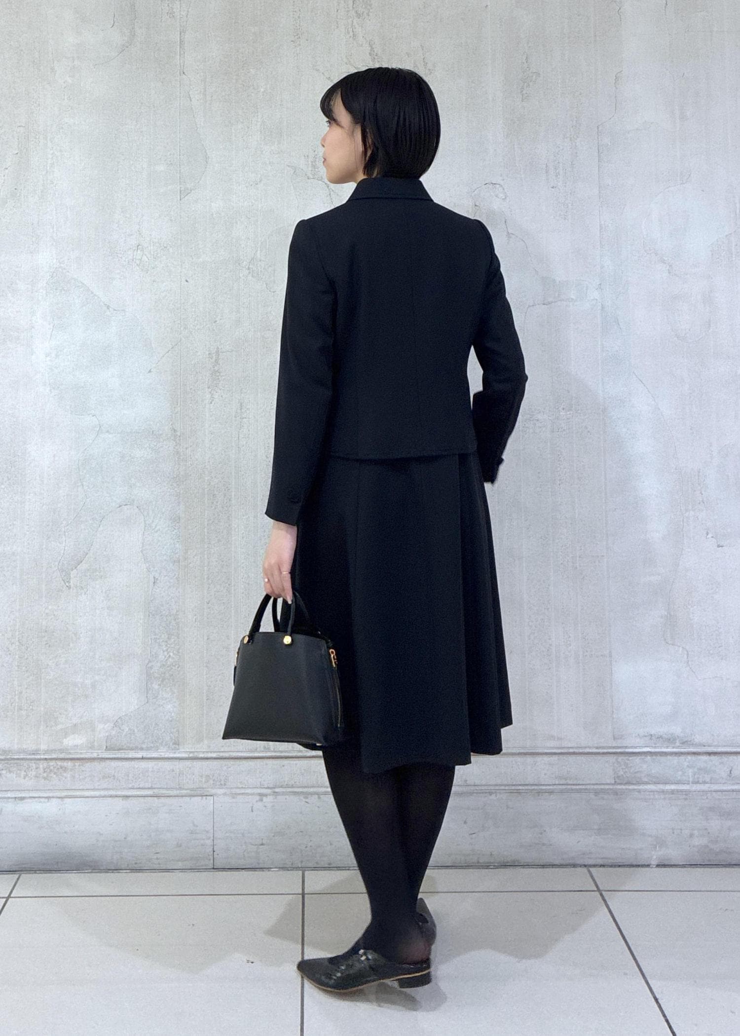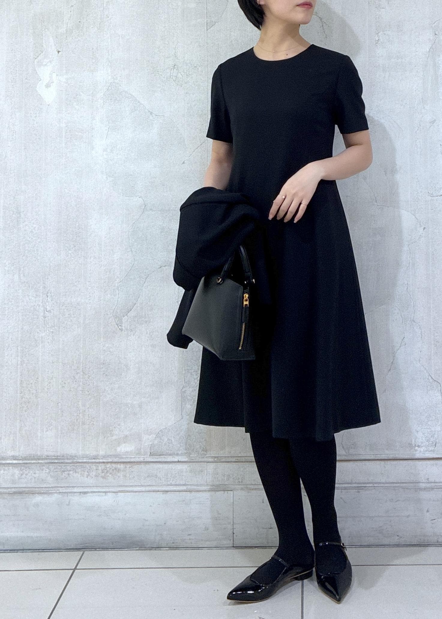 半袖のワンピースとジャケットの組み合わせなので、シーズン幅広くお召しいただけます。