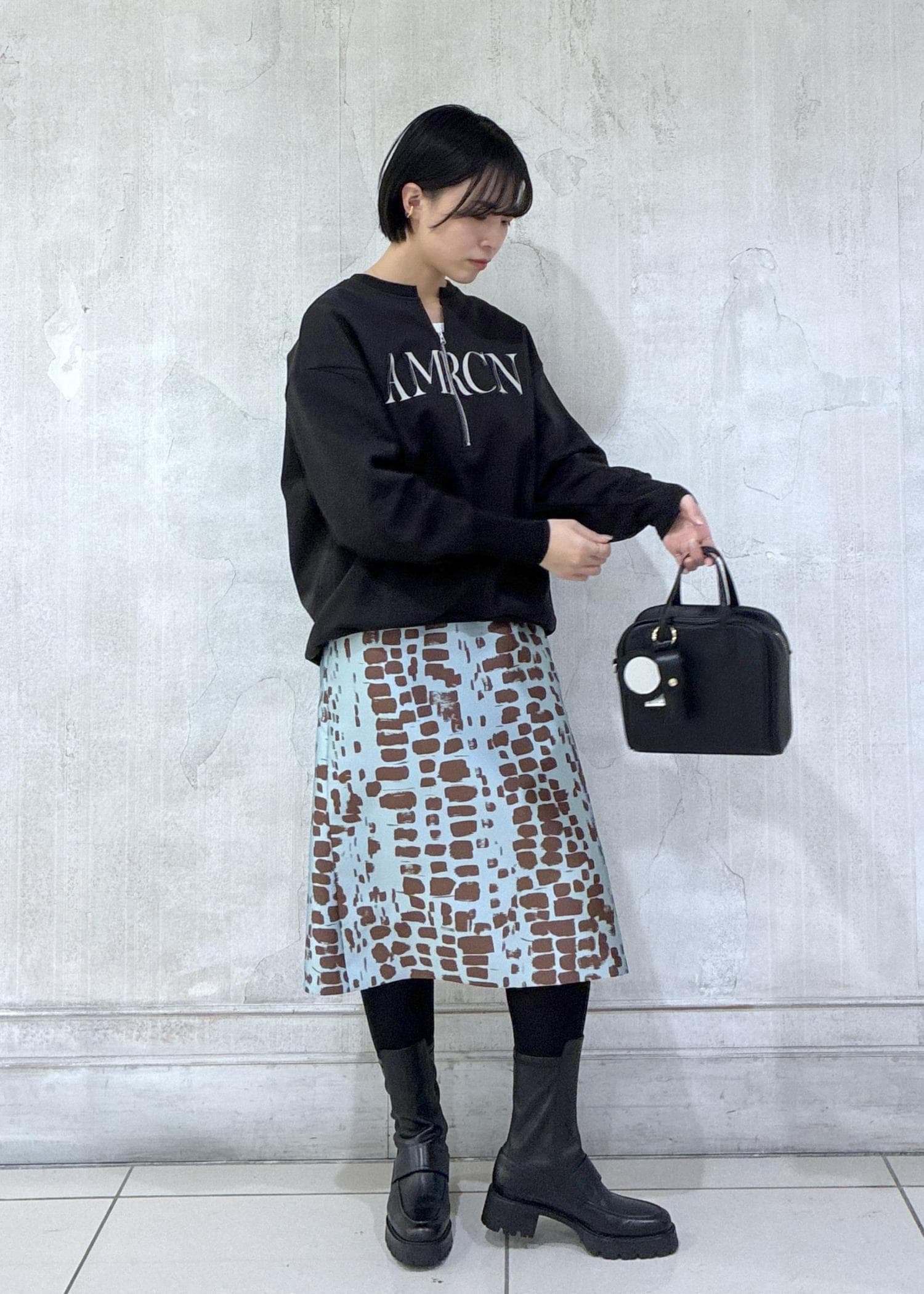 柄スカートを冬に取り入れたことがあまりなかったので、新鮮なコーディネートとなりました♪