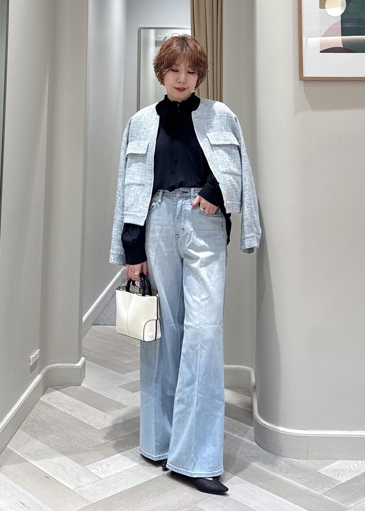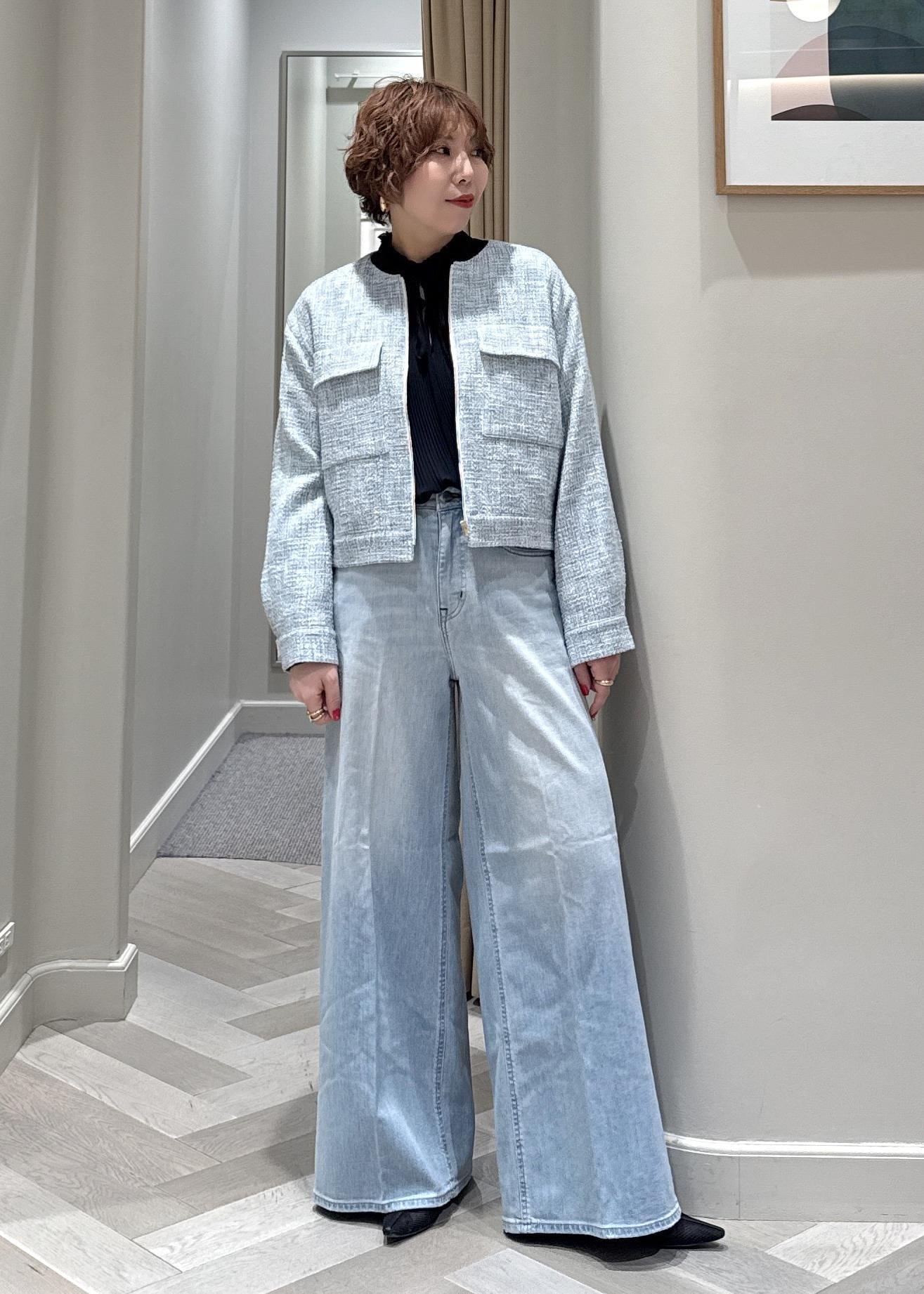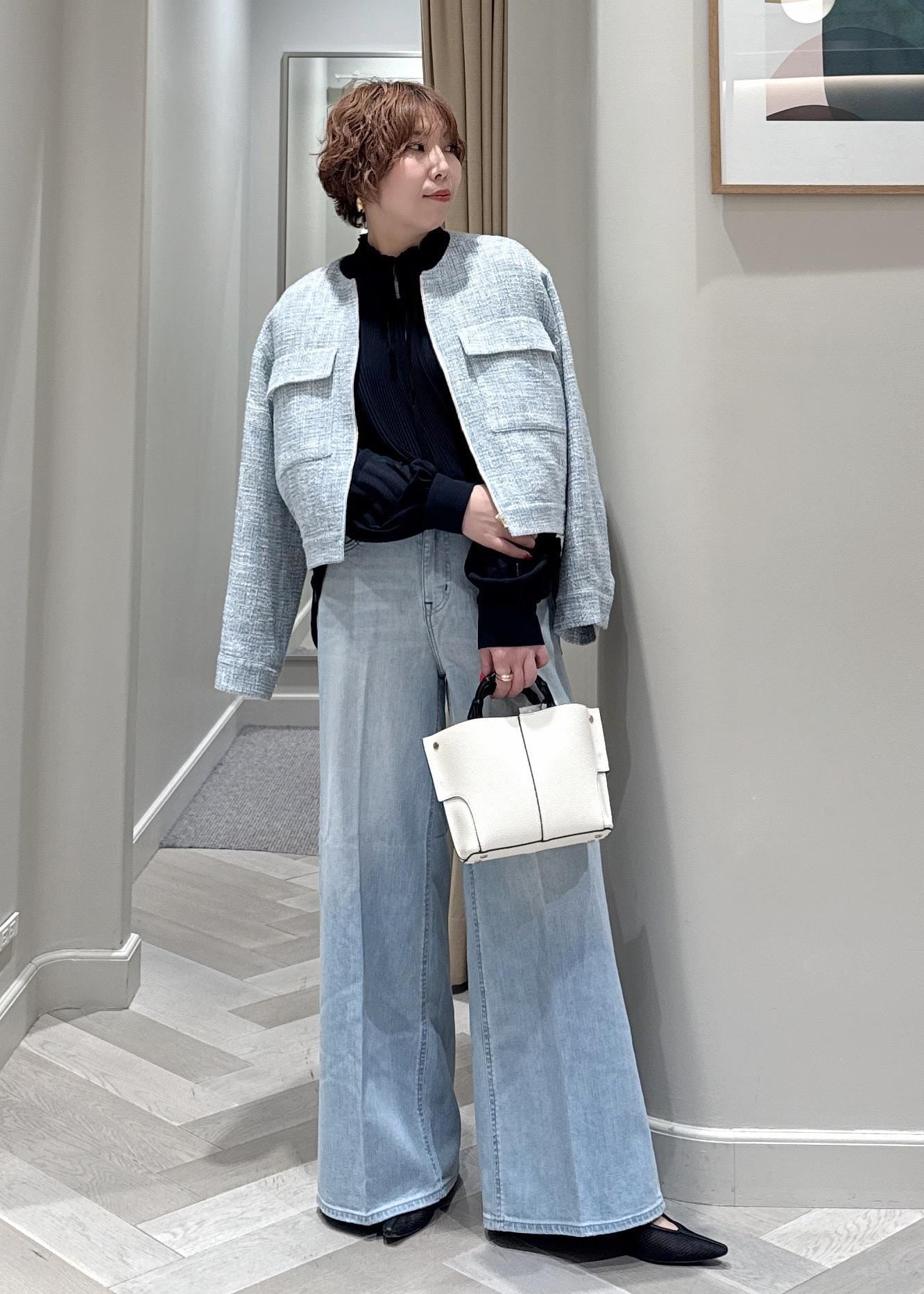 ROPÉツイードノーカラージャケットサックス / F¥52,800レビュー軽い素材で普段使いもしやすいツイードジャケット。