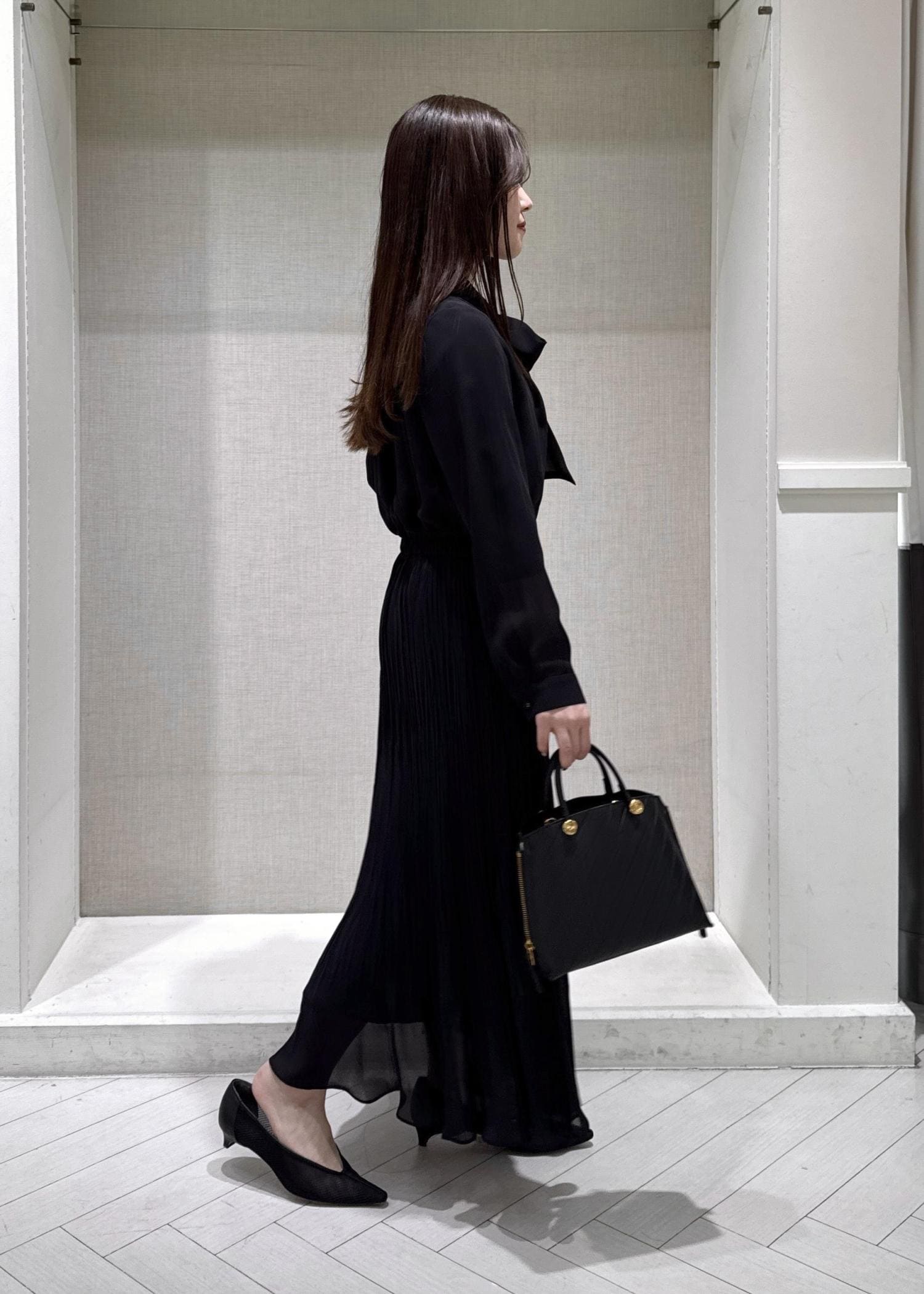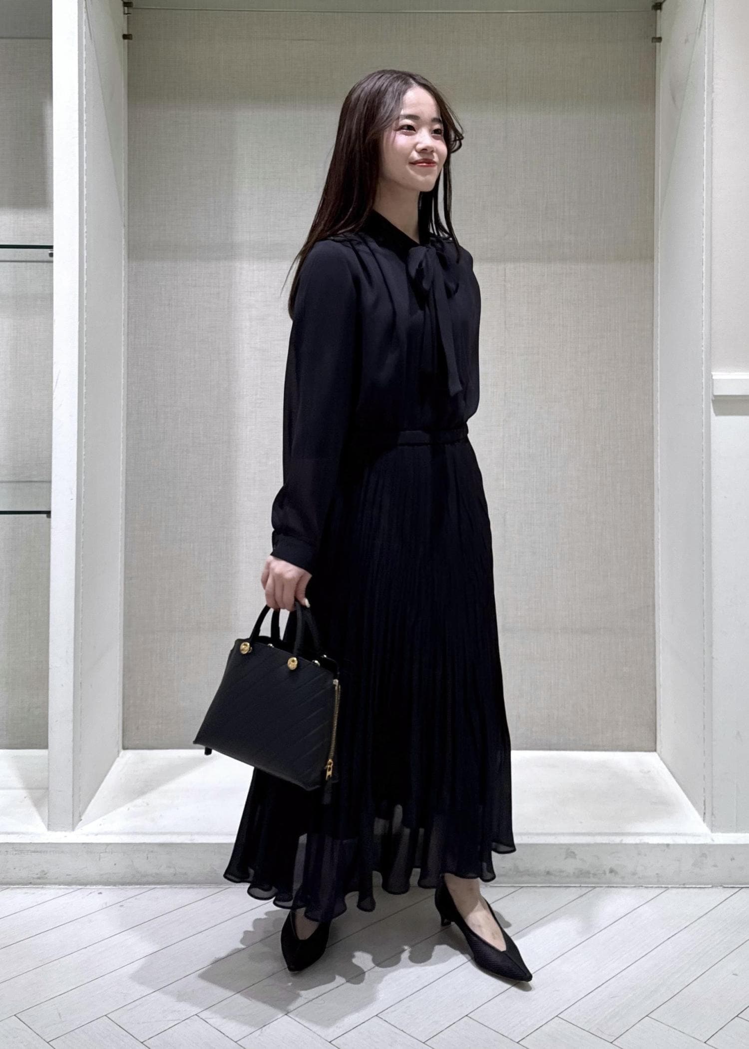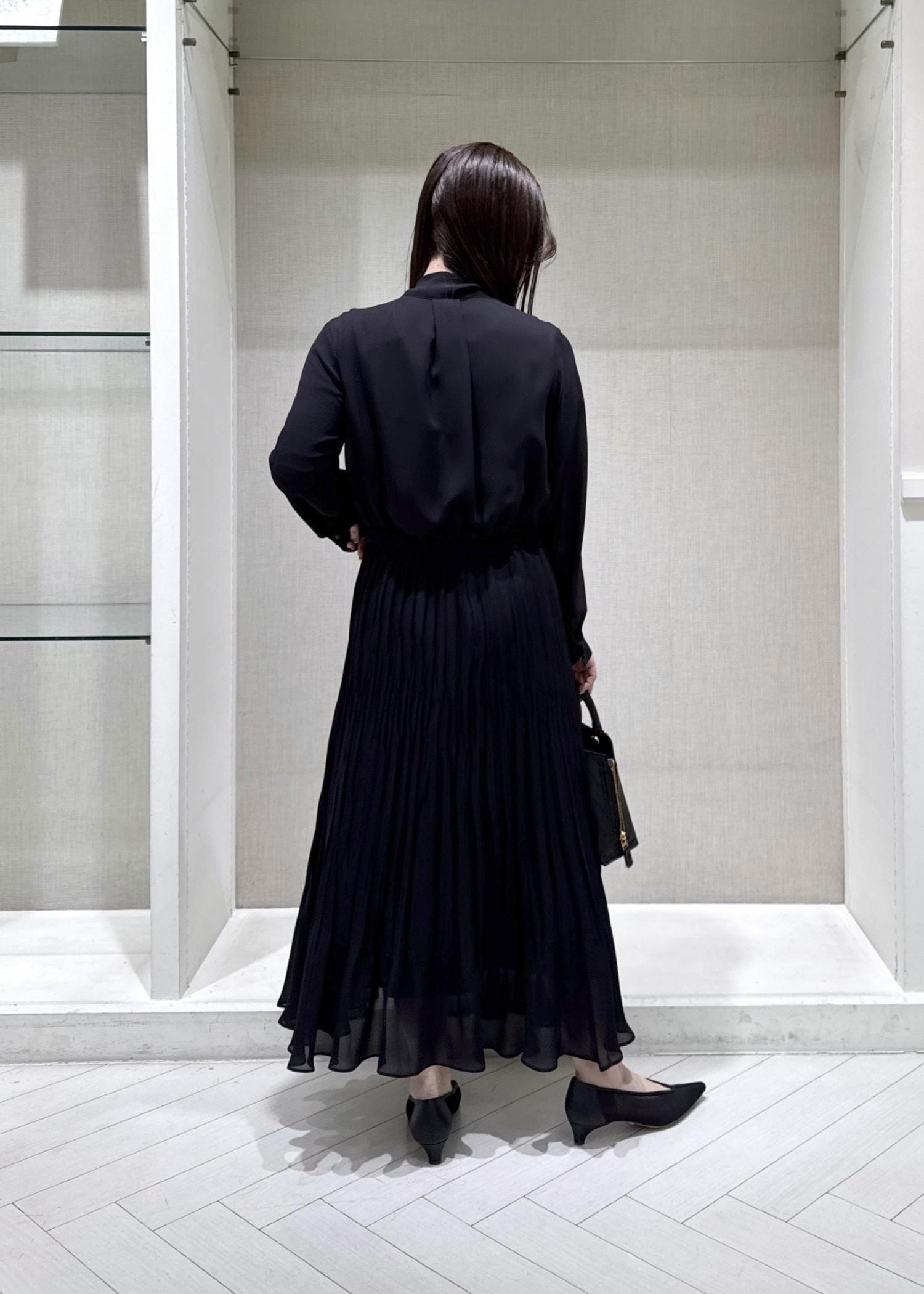ROPÉジョーゼットシフォンプリーツワンピース/26SSネイビー / 36¥49,500レビュー身長150cmで36サイズを着用しています。