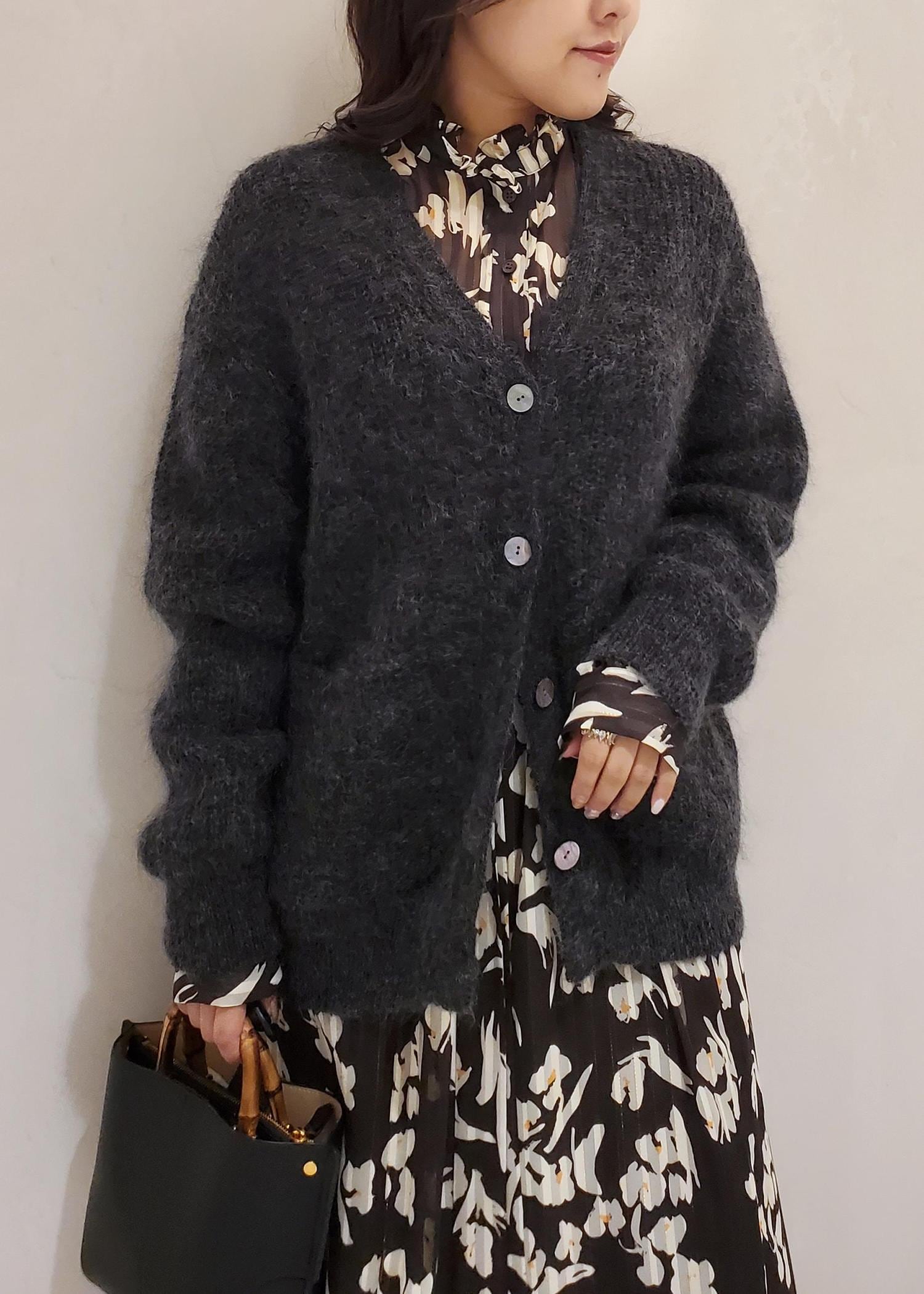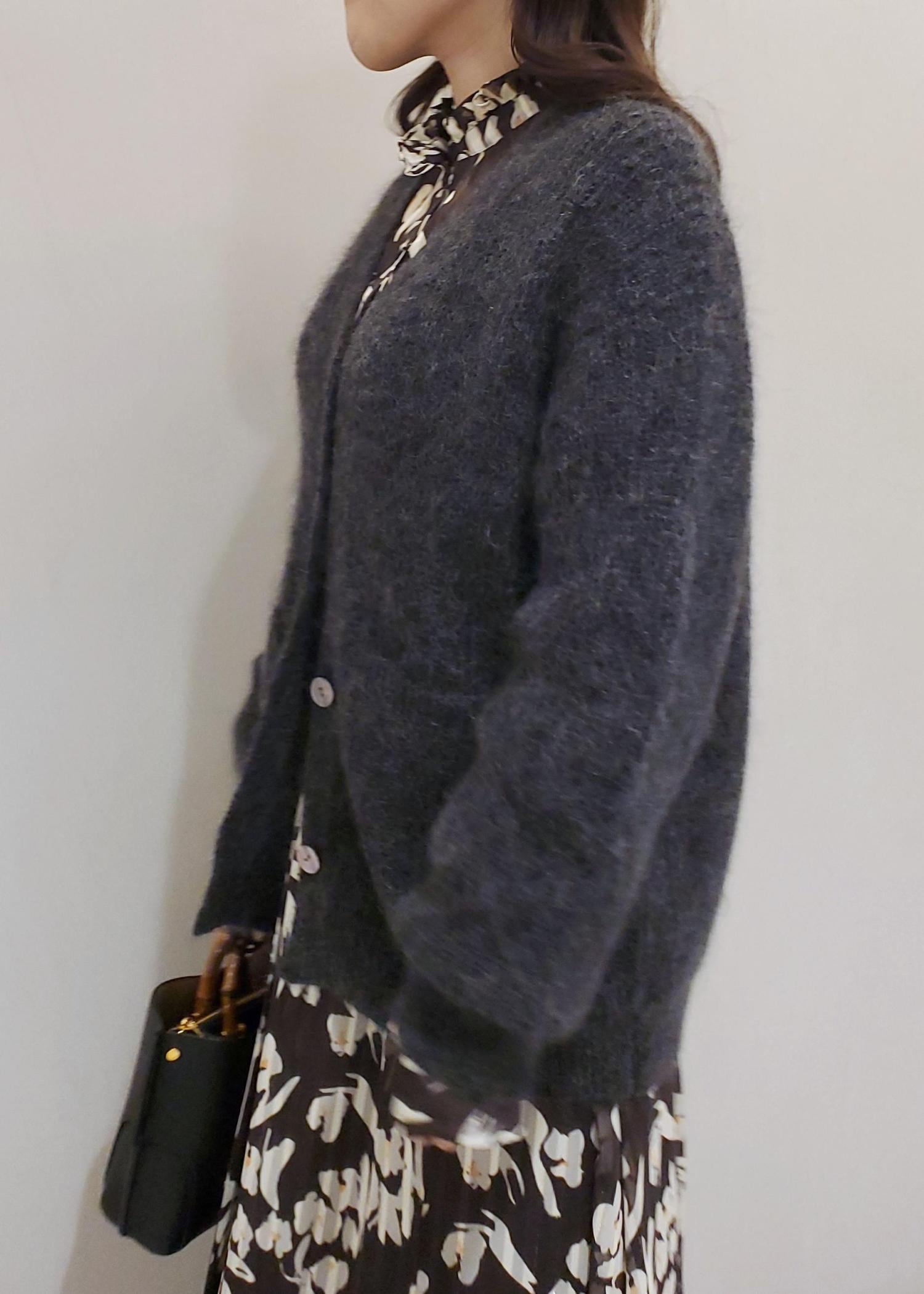 ROPÉスーパーキッドモヘヤVネックカーディガン/イージーケアチャコール / F¥29,260レビュー全体的にゆったりとしたルーズなシルエットなので、インナーにシャツやブラウスなども重ねられます。