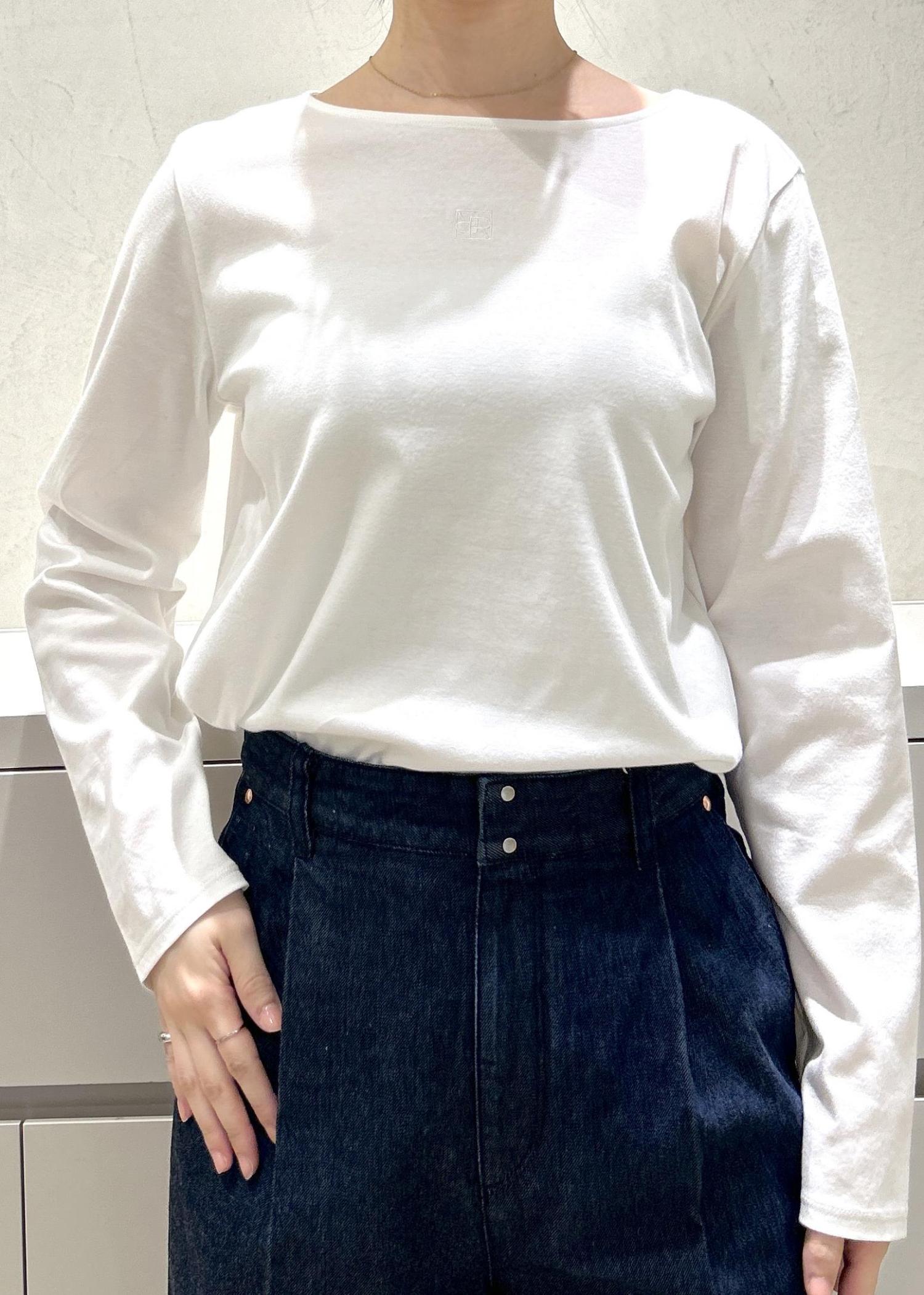 ROPÉアナグラム刺繍 ロングスリーブカットソー/イージーケアホワイト / F¥7,150レビュー腰回りが隠れるくらいの丈感です。