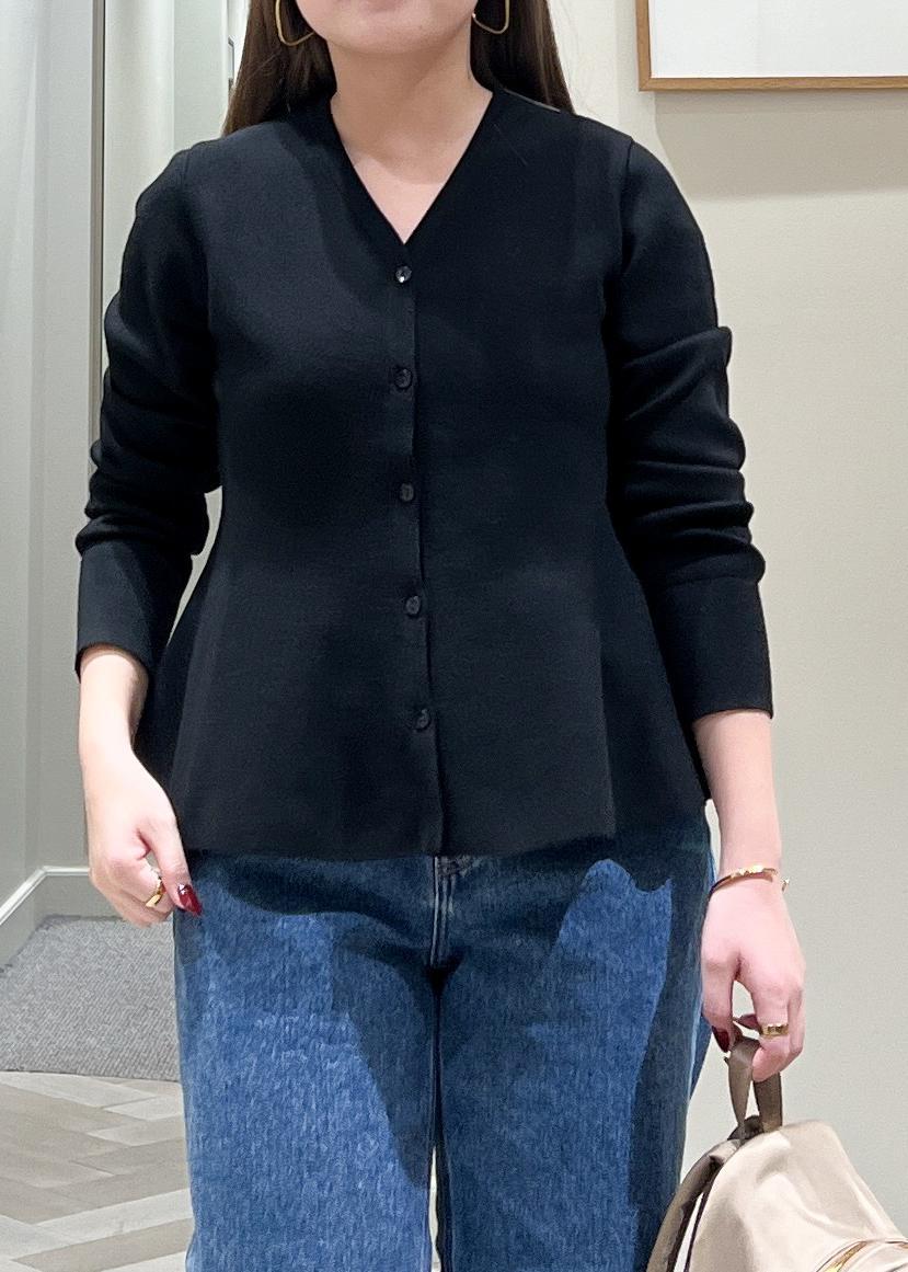 ROPÉウール混ニットペプラムカーディガン/イージーケア・セットアップ対応ブラック / F¥19,250レビュー伸縮性あり、バストはぴったりめです。