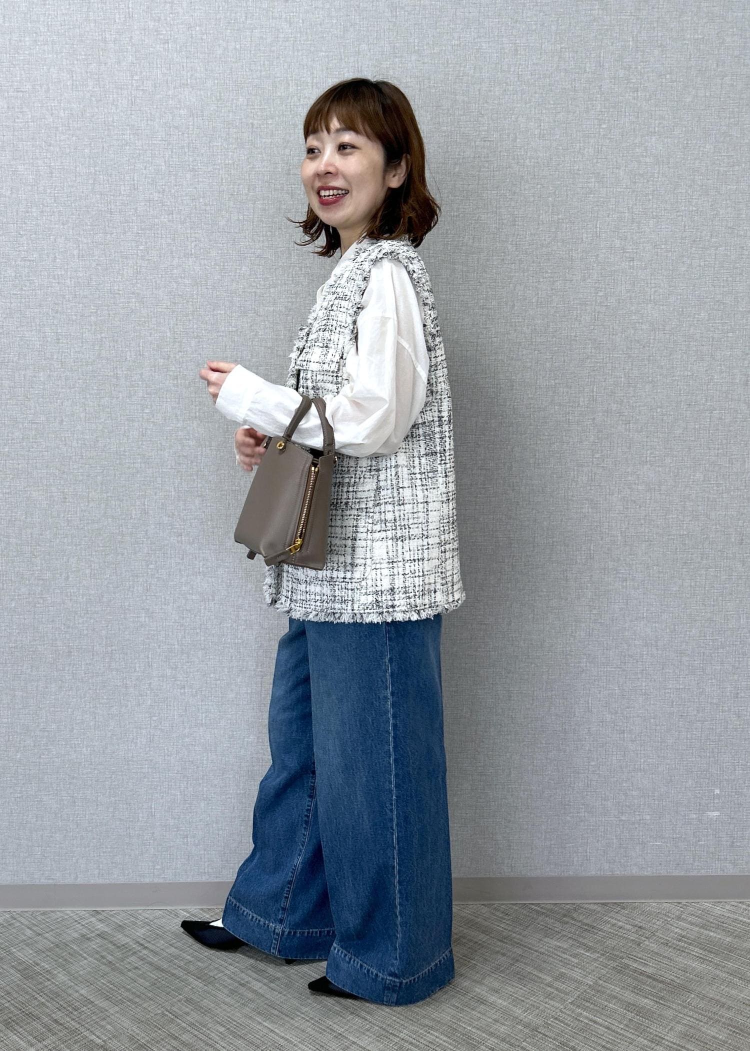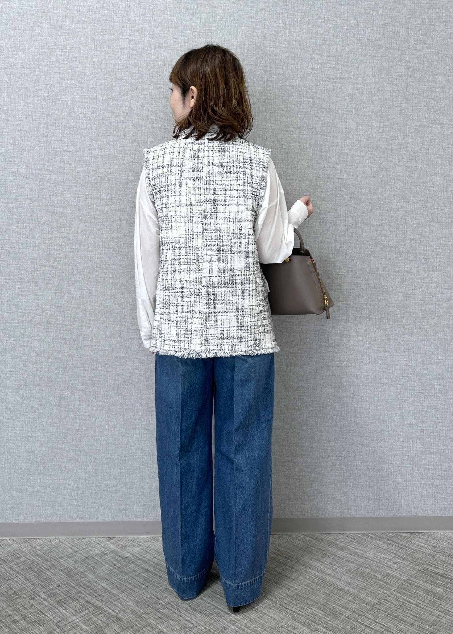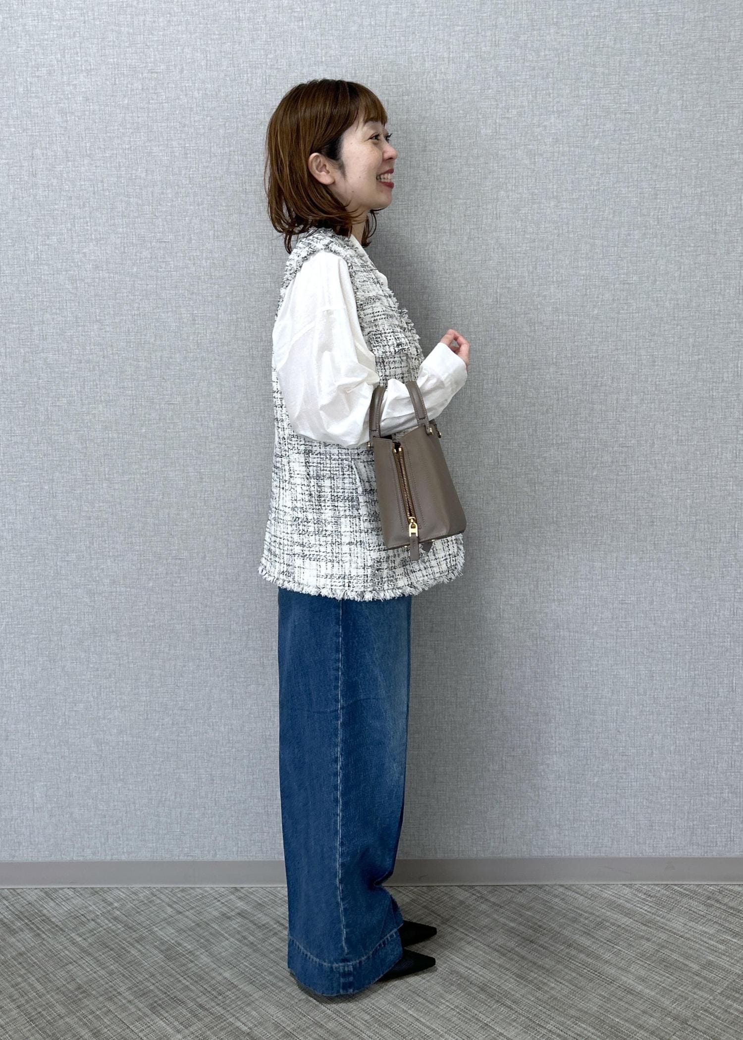 ROPÉツイードVネックジレキナリ系 / F¥48,400レビュー着丈はヒップが隠れる長さです。