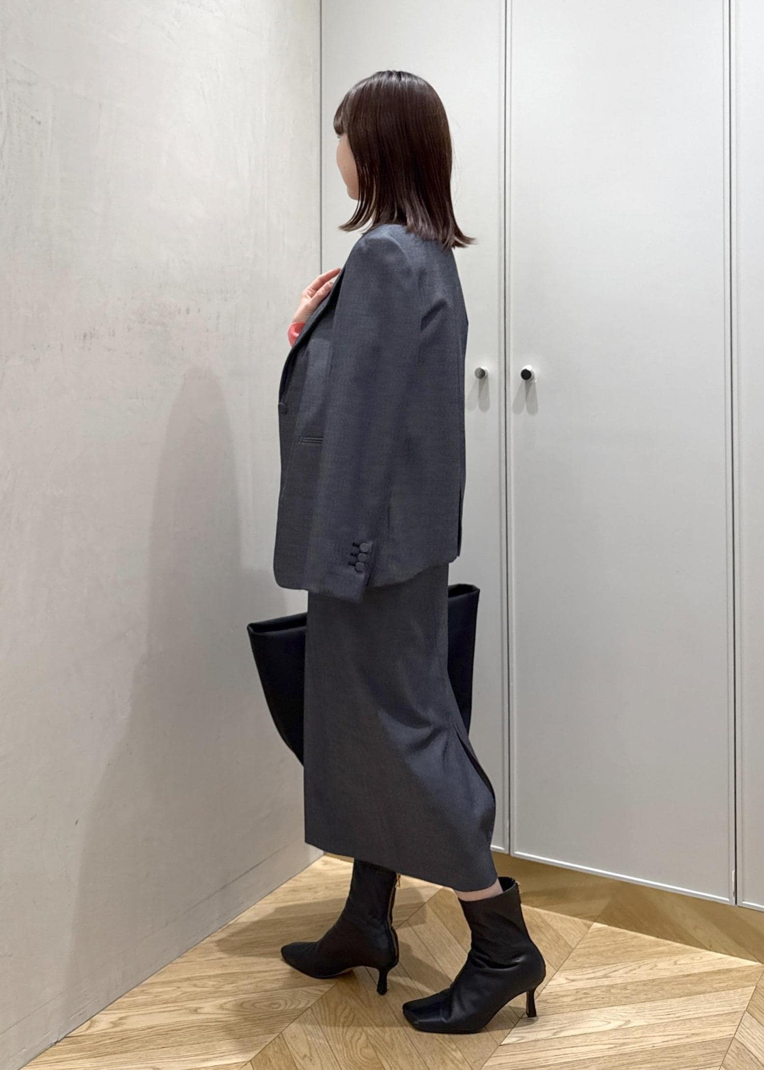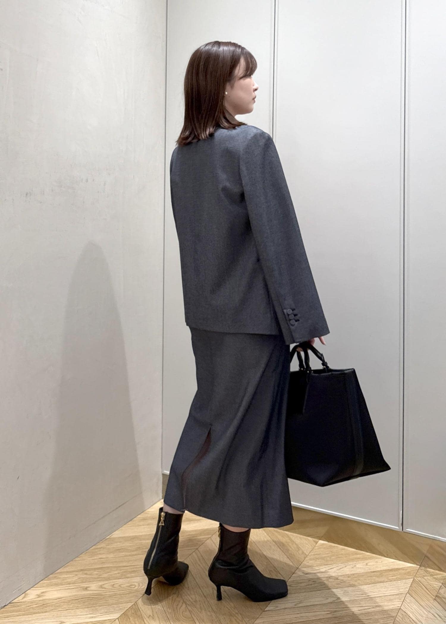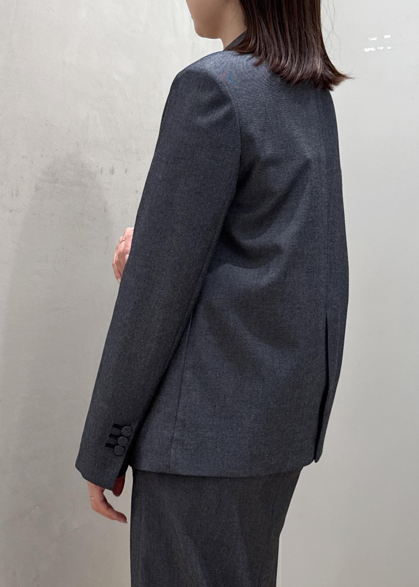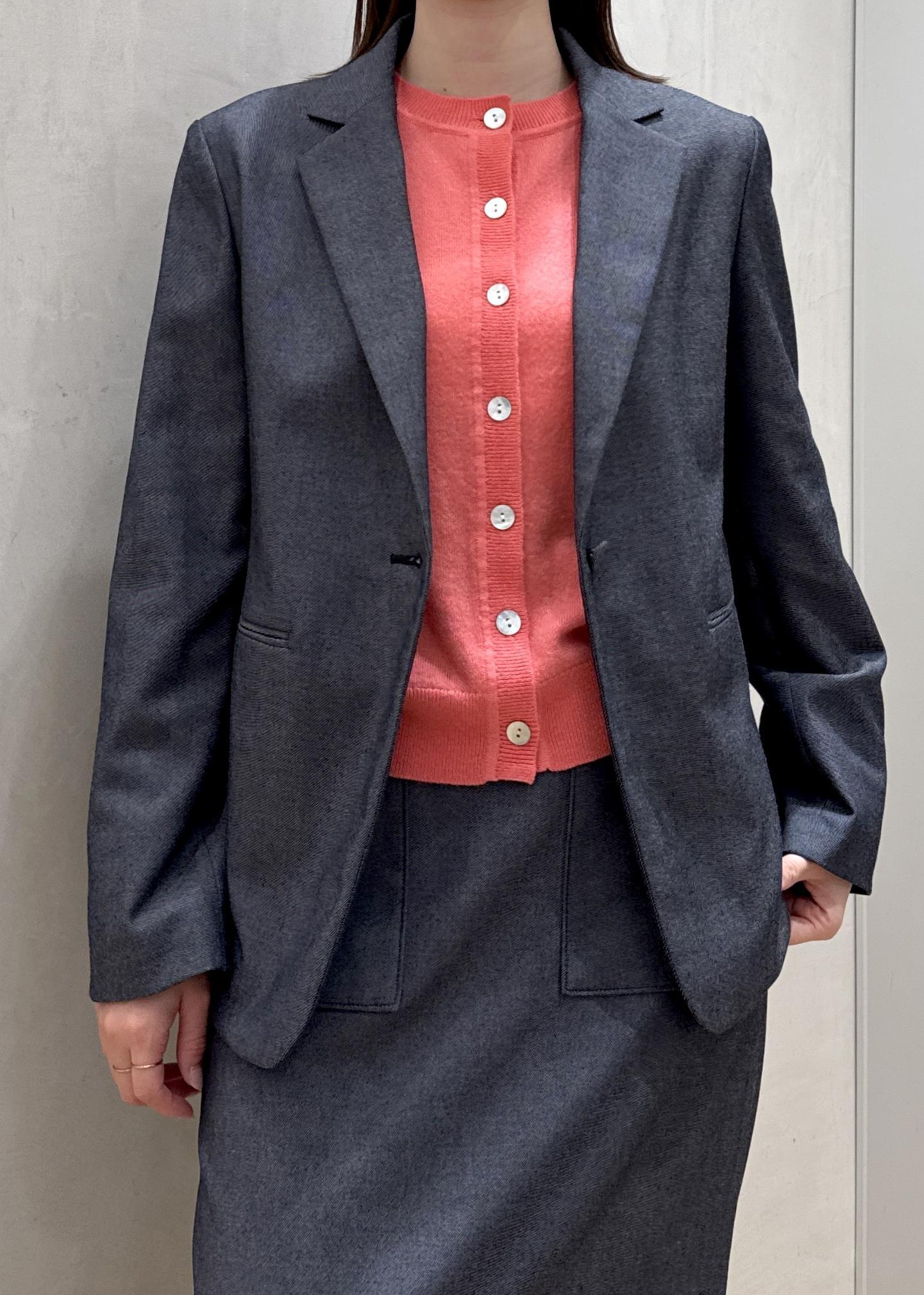 上質な落ち感とツヤもあり上品見えするジャケットです。