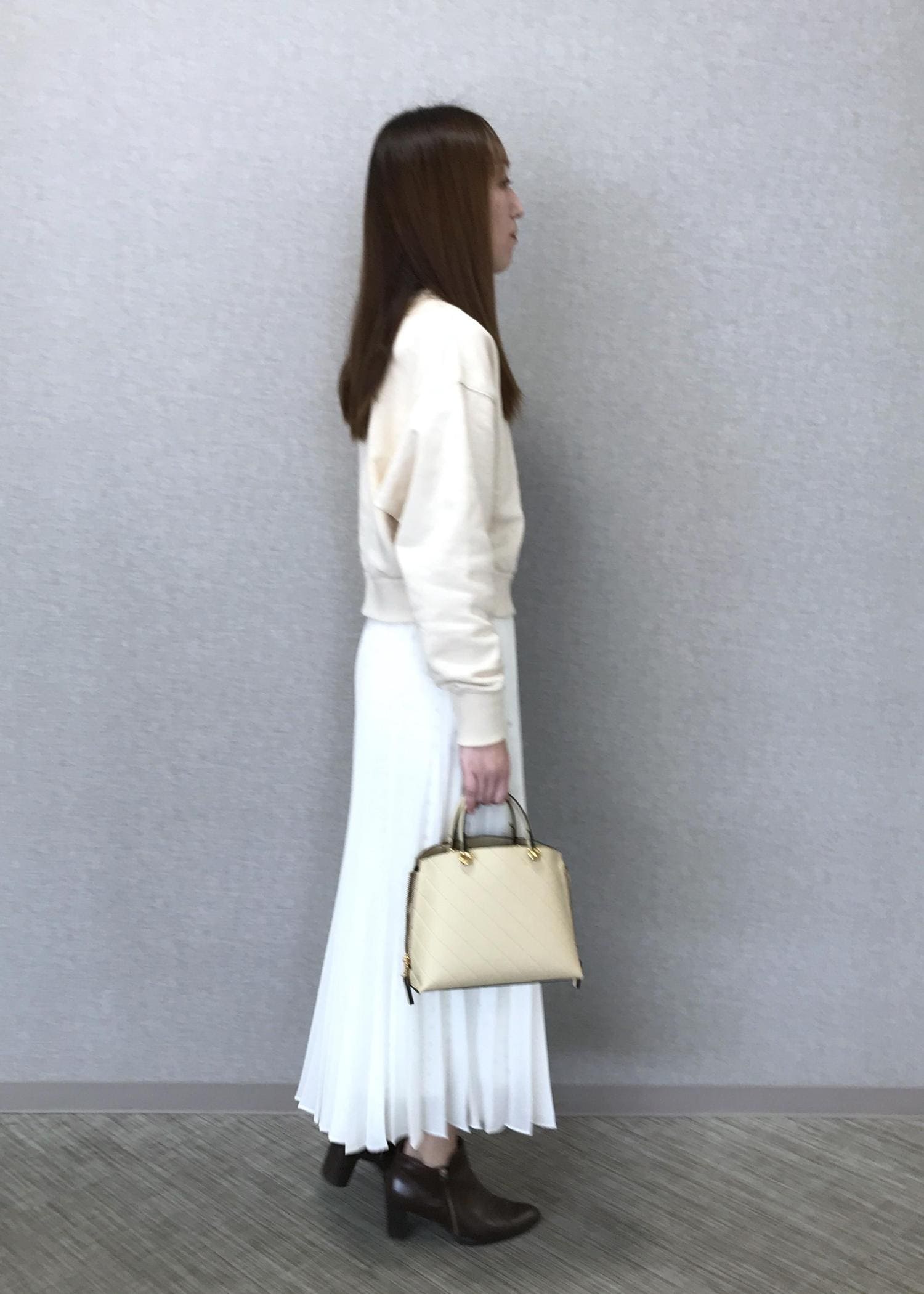 ベージュホワイトの春らしいカラー合わせで爽やかにスタイリングしてみました。