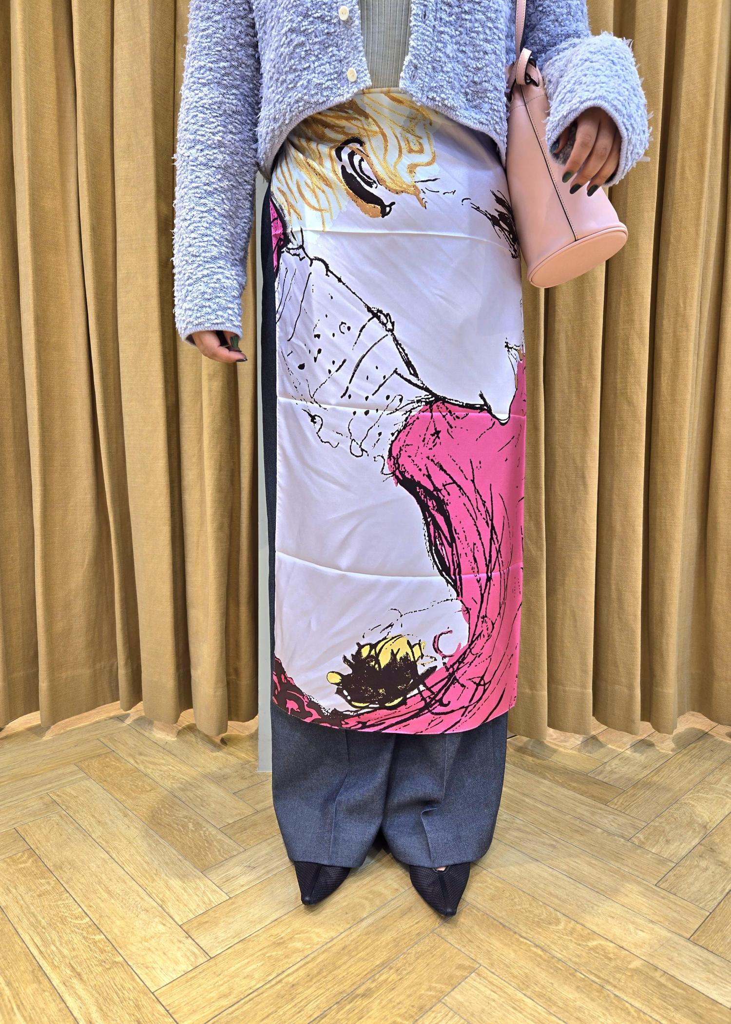 ROPÉロートレックグラフィカル シルクスカーフ/Lサイズピンク / F¥19,800レビューコーデに一気に華やかさをプラスしてくれるスカーフ。