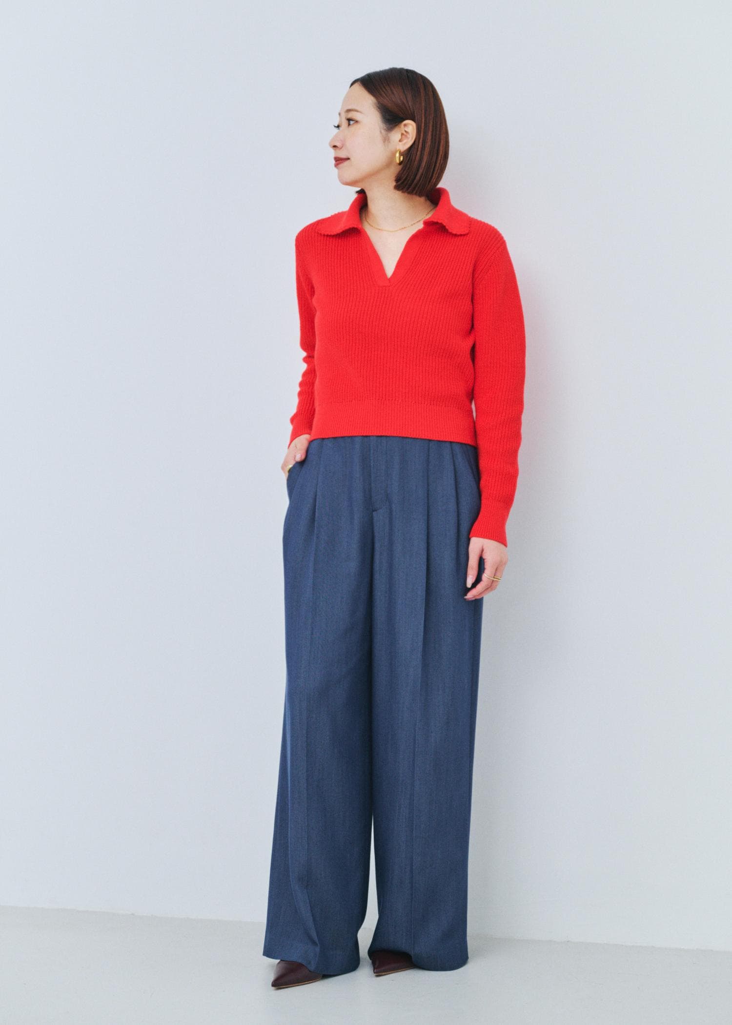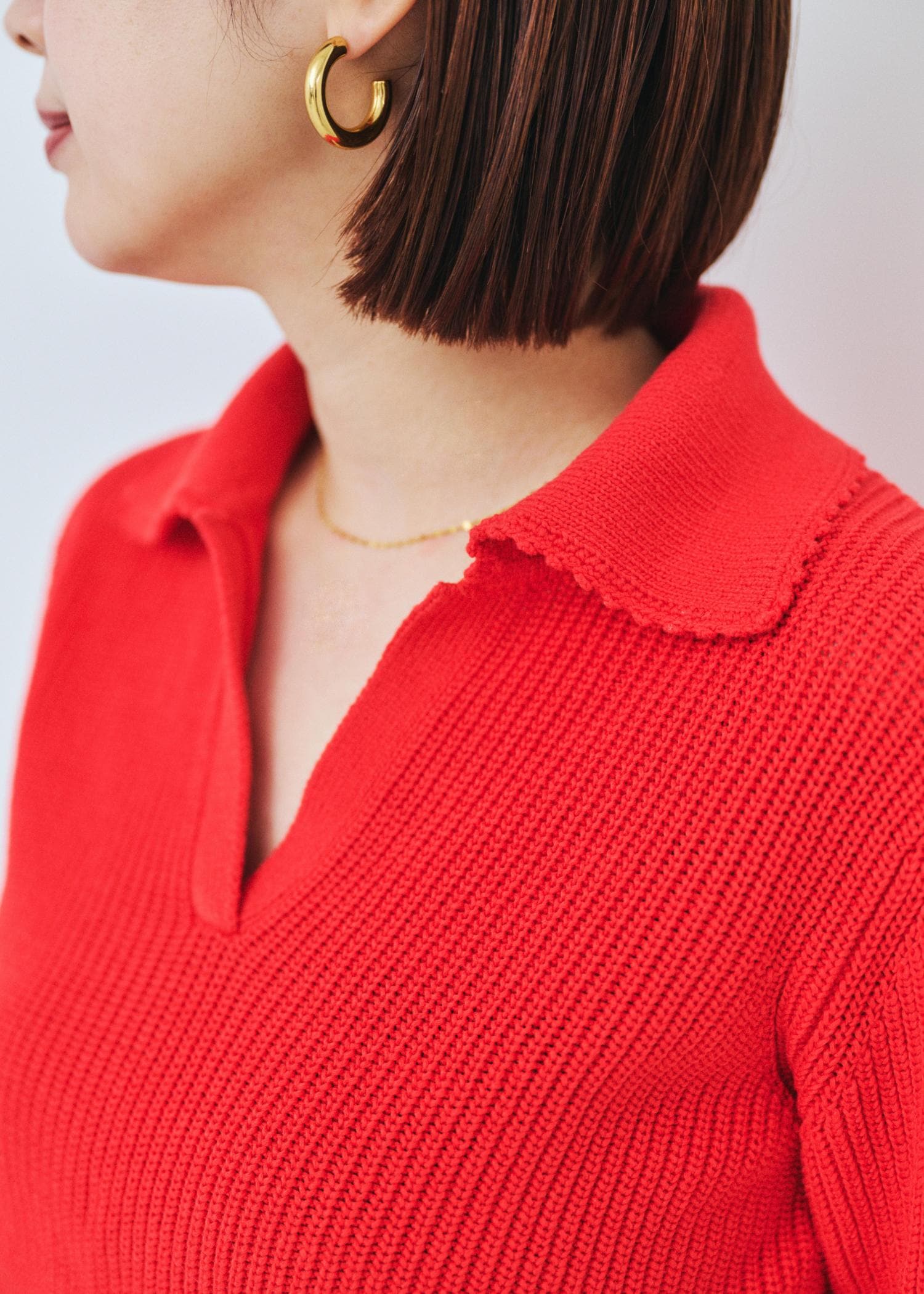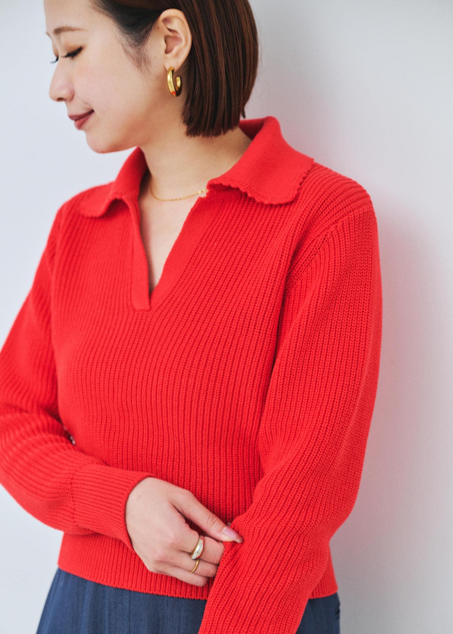 NEW!ROPÉオーガニックコットンポロニットプルオーバー/イージーケアレッド系 / F¥19,800レビュー顔周りをすっきりと見せてくれるスキッパーデザインで着丈は腰骨にかかるほどでコンパクトです。