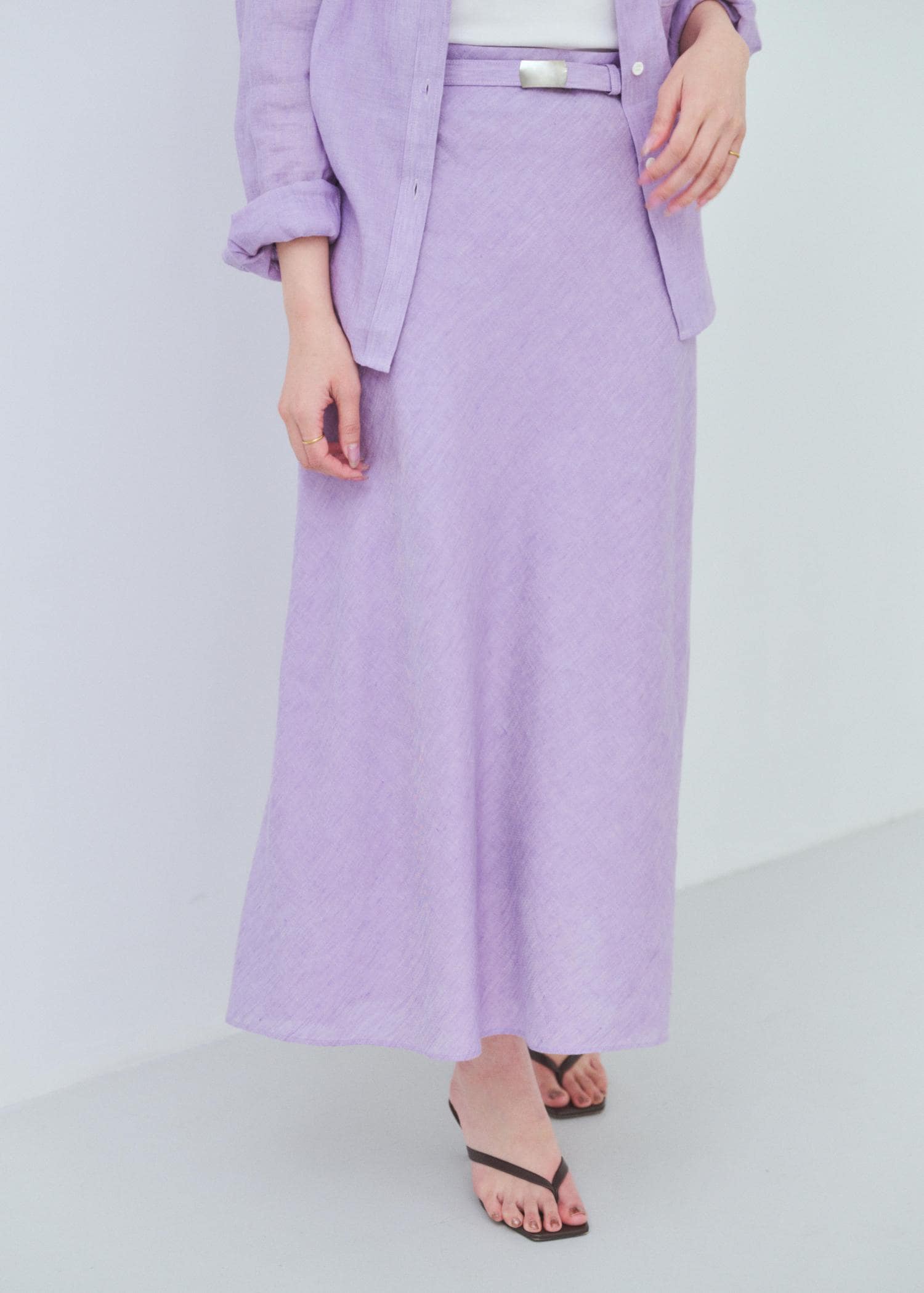 予約ROPÉリネンシルクコットンマーメイドスカート(無地&ストライス)/イージーケア・セットアップ対応ラベンダー / 38¥29,700レビュー腰回りはスッキリとしたデザインのため通常と同じサイズ感でちょうど良かったです。ちょうど足首が出る着丈のためフラットシューズを合わせてもスッキリ見えます。
