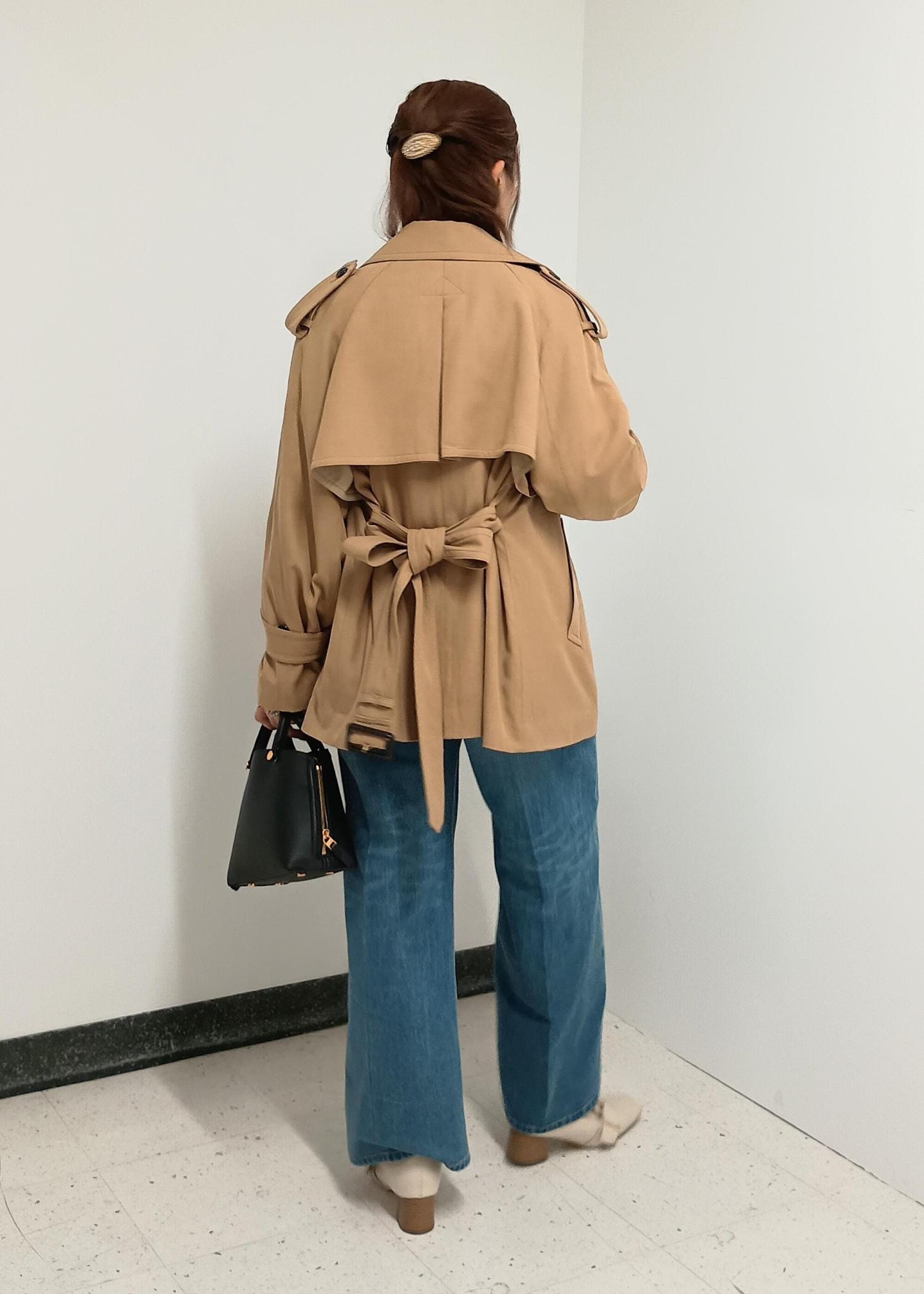 ROPÉ【MANTECO(マンテコ)】テンセルウール スプリングトレンチコートベージュ / F¥99,000レビューとても肌触りが滑らかで柔らかな素材感。ハリが強すぎないので、柔らかな女性らしいシフォンやサテン、レースなどのアイテムとも相性が良いです。濃いめのベージュですが、インナーの色合わせは難しくなく、また袖幅も広めなので、長いシーズンお手持ちのアイテムに合わせて楽しめます!