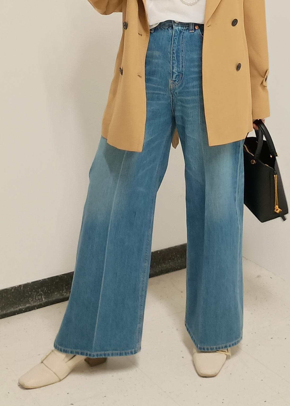 ROPÉイージーワイドデニムパンツ(岡山デニム)/セットアップ対応・イージーケアブルー系 / 38¥30,800レビューデニムジャケットとセットアップで使える楽ちんデニム。ウエスト後ろはゴムになっているので履き心地がとても楽です。センタープレスのキレイめシルエットなので、大人っぽさのあるスタイリングにもおすすめです!