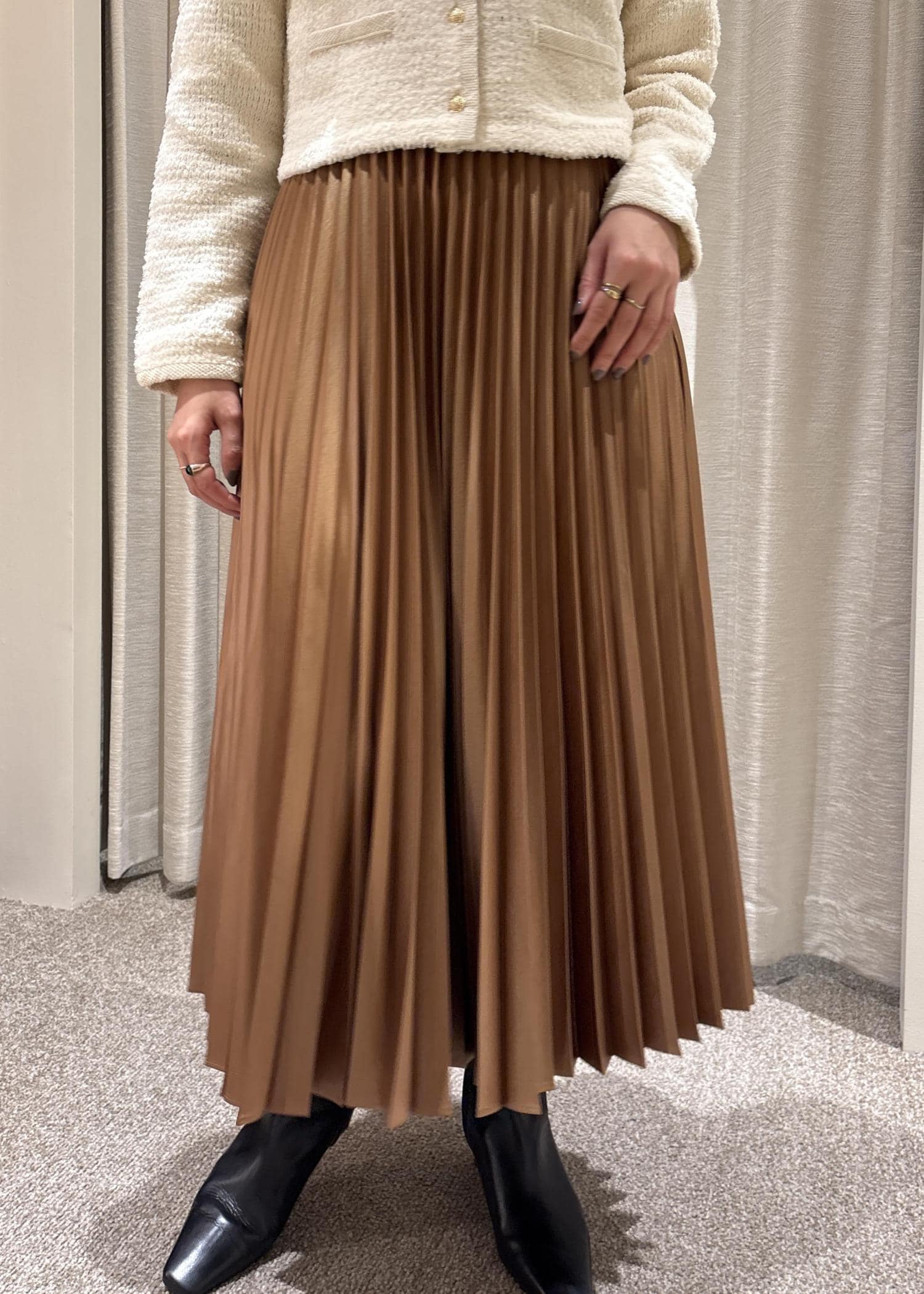 ROPÉシャイニープリーツスカート/イージーケアキャメル / F¥26,400レビューワンサイズ展開です。