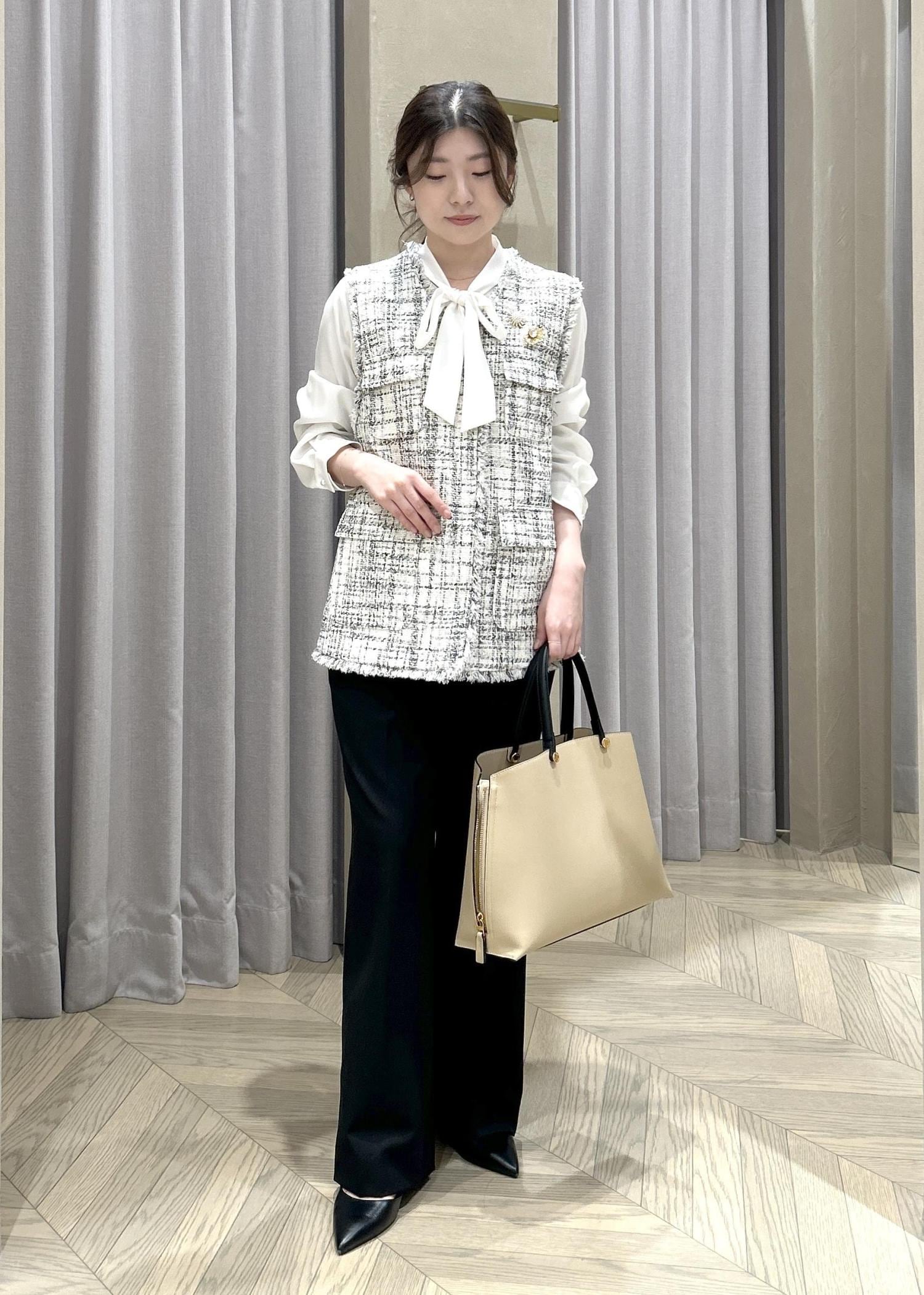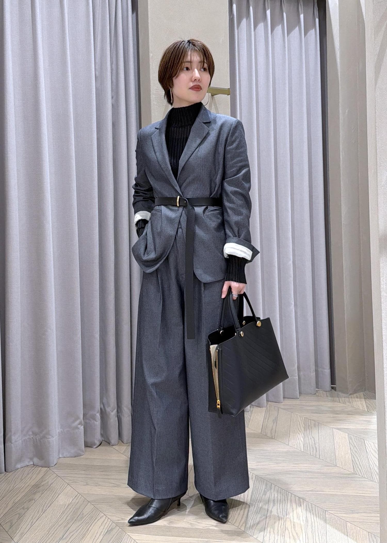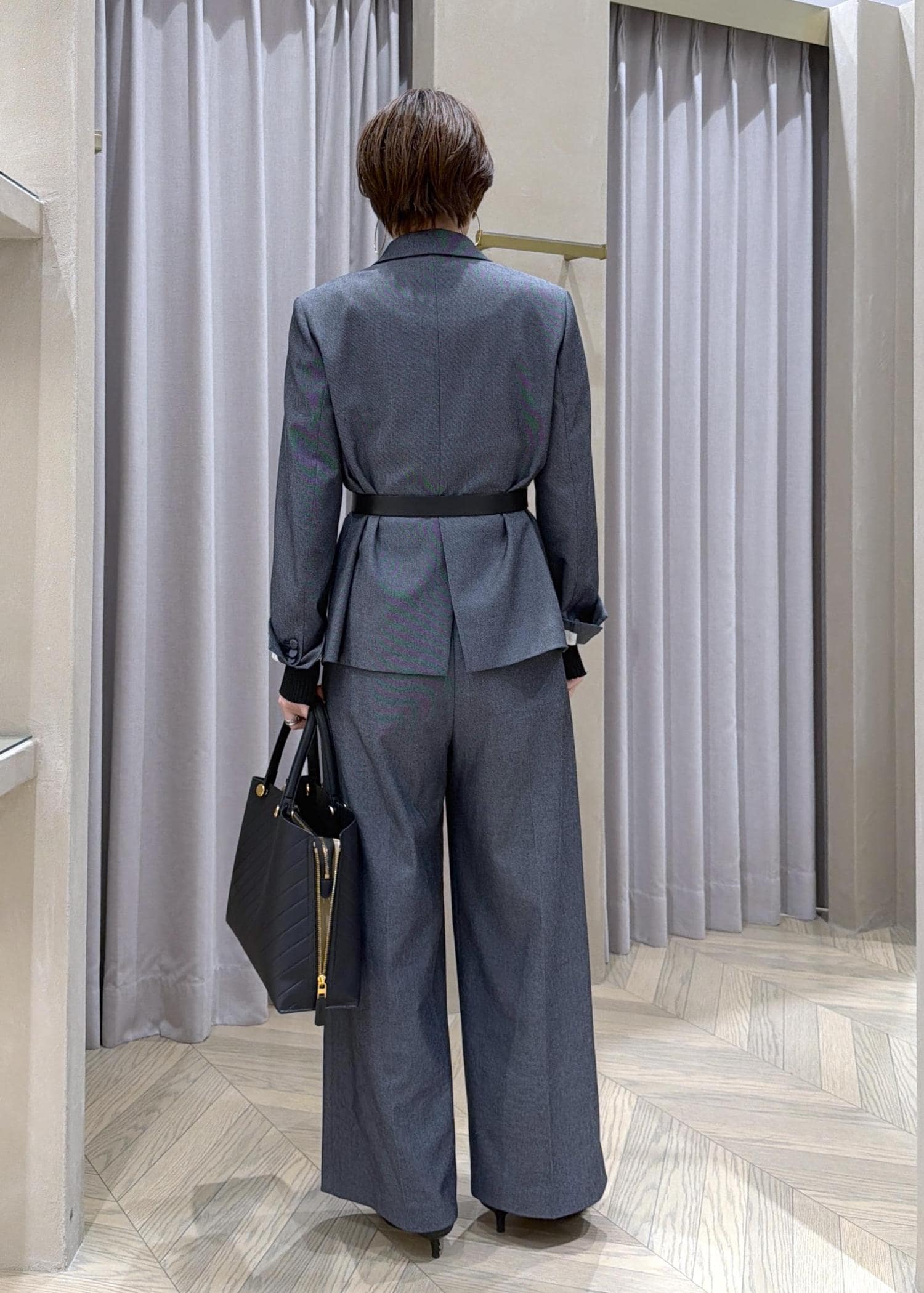 デニムライクなので堅苦しくなく、少しカジュアルにも見えるので色んなコーディネートとも合わせやすいと思います♪