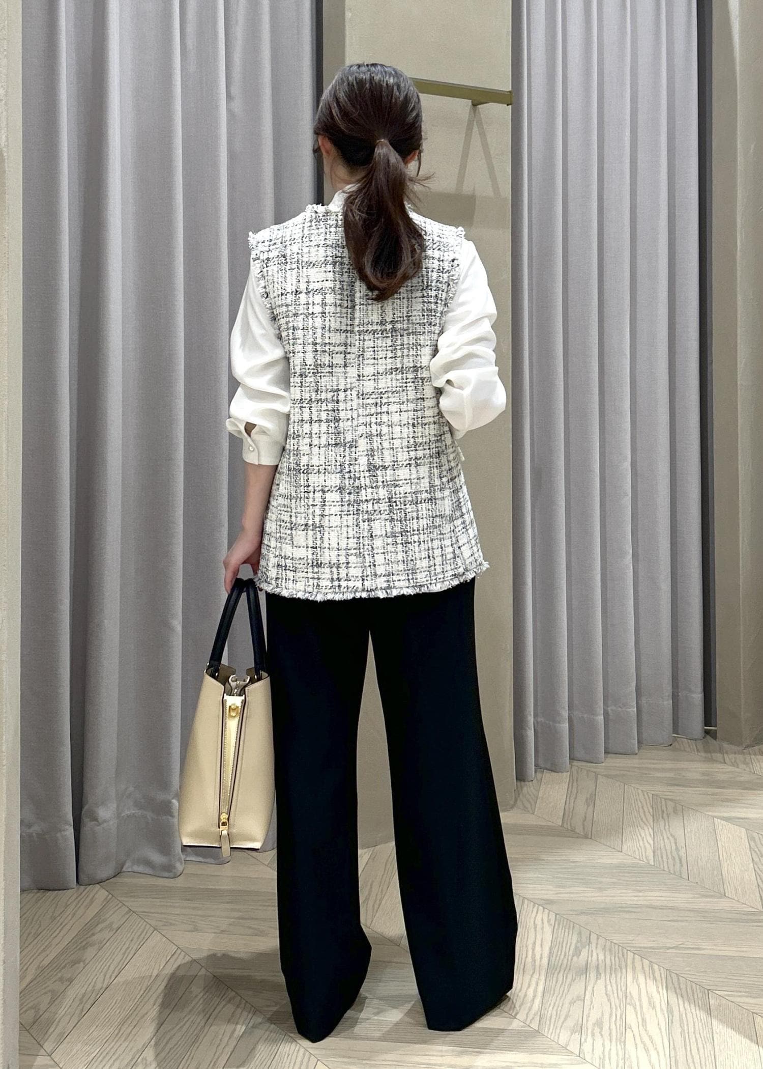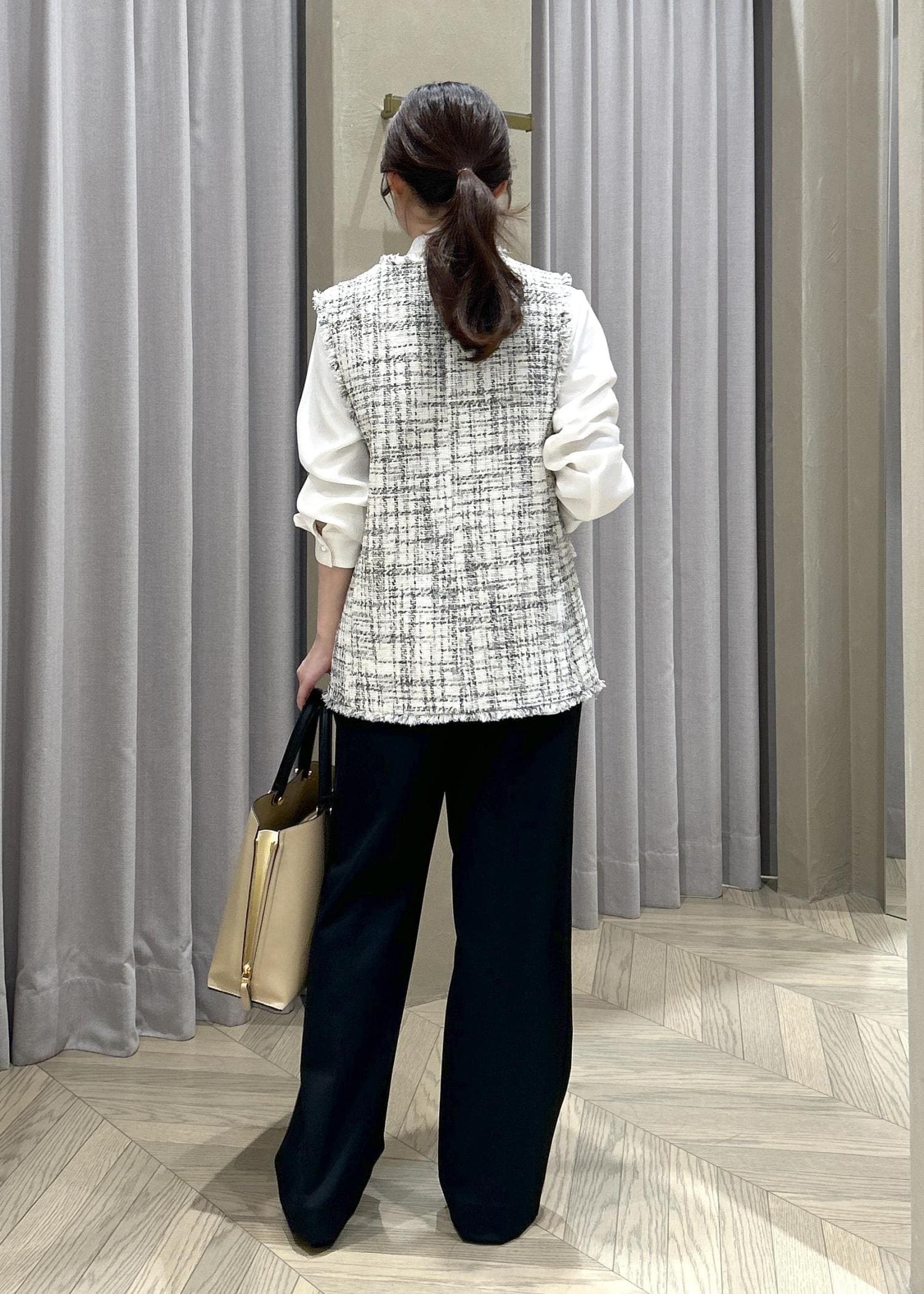 ROPÉツイードVネックジレキナリ系 / F¥48,400レビュー身長151㎝の私が着用してヒップが隠れる程度の丈感です。