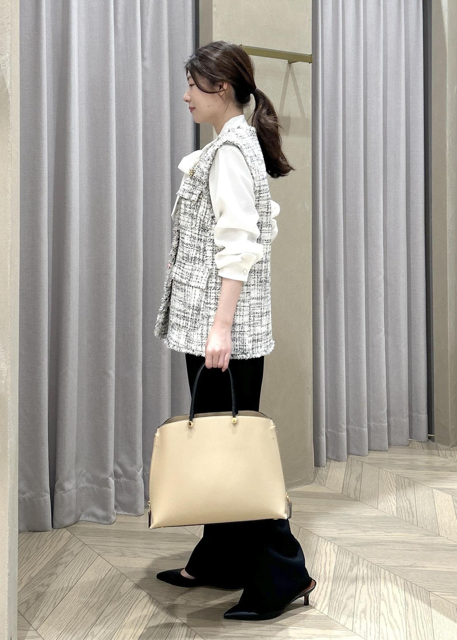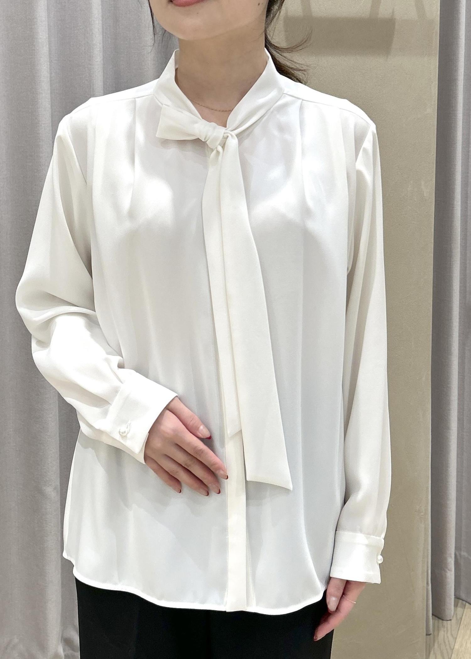 ROPÉボウタイブラウス/イージーケア・25AWホワイト / F¥22,000レビューお尻が隠れる程度の丈感で、袖丈は手が半分隠れる長さです。