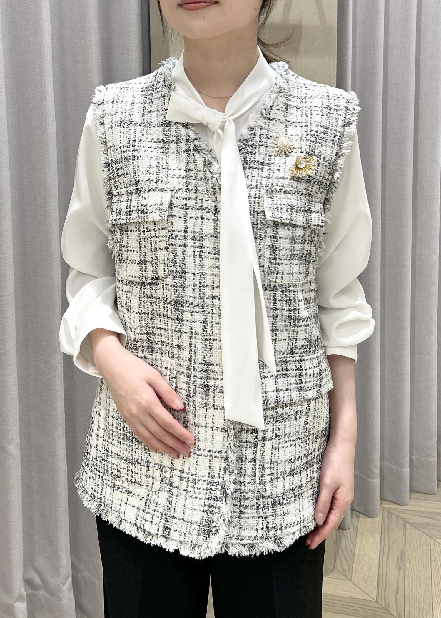 ツイードジレにブローチをプラスして華やかなセレモニースタイルにしてみました♪