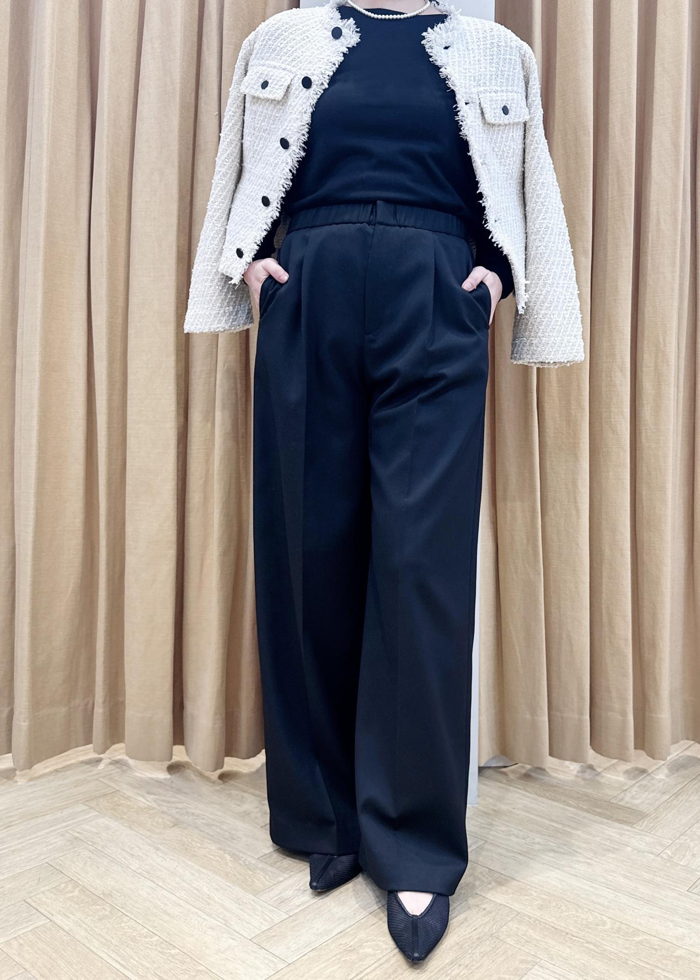 ウエストゴムとワンタックで楽にお召しいただけながらも適度に落ち感があるので見た目がきちんとしてみえるのがきやすいです。 -