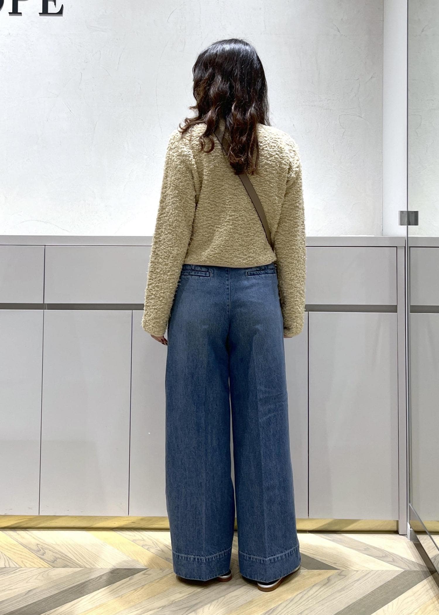 全体的にゆったりしたサイズ感ですが、着丈は腰骨あたりと短めなのでコンパクトな印象です。