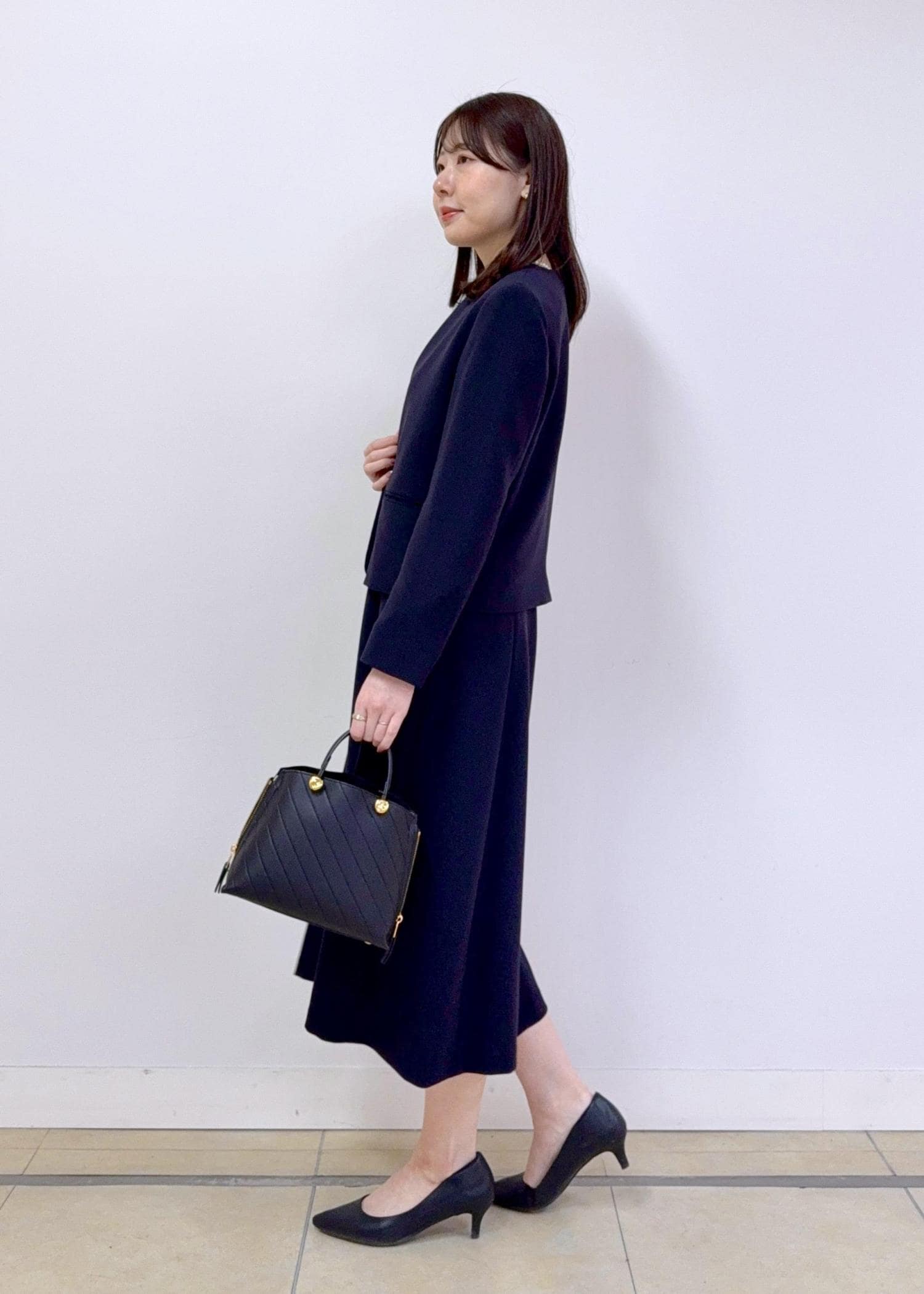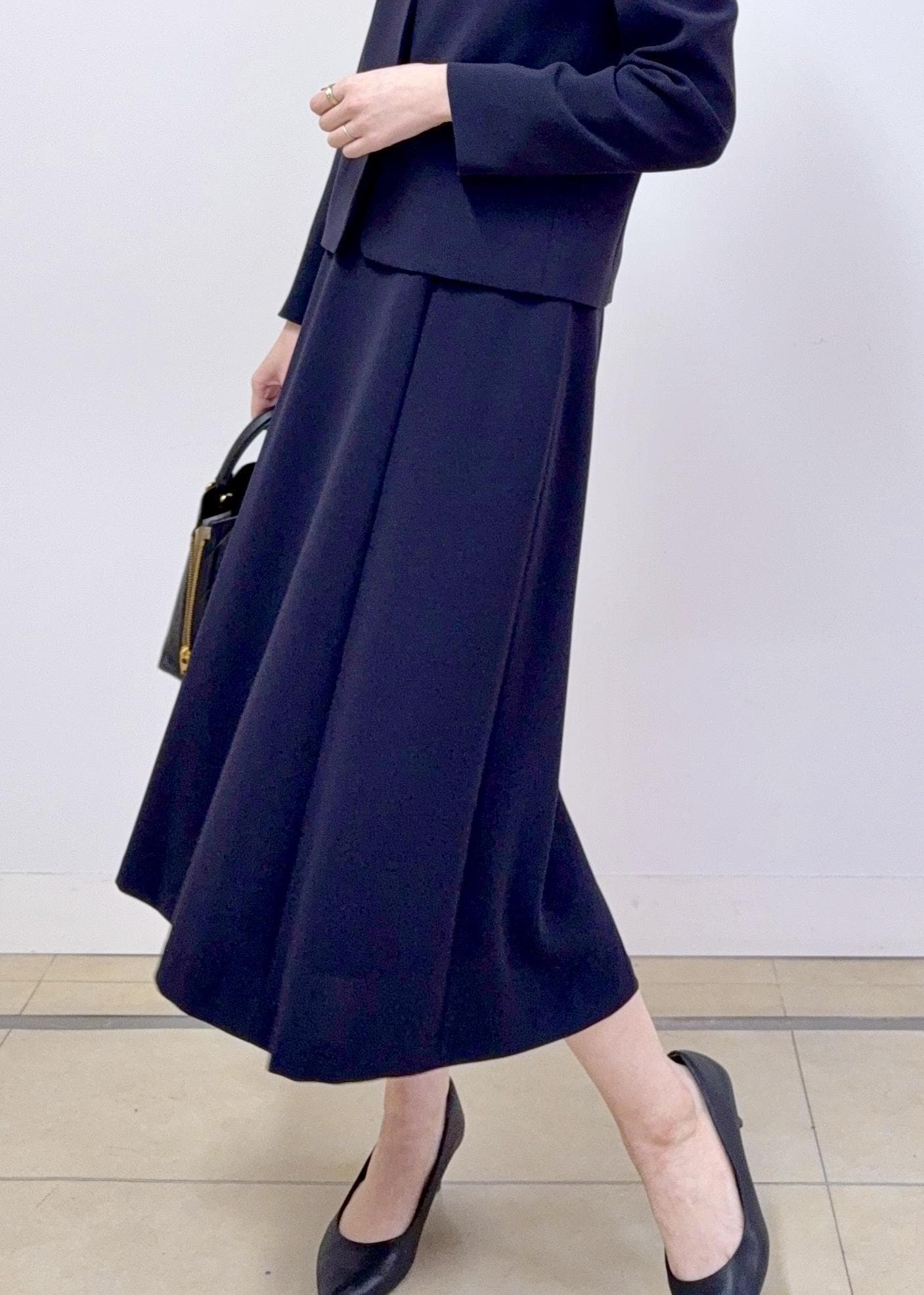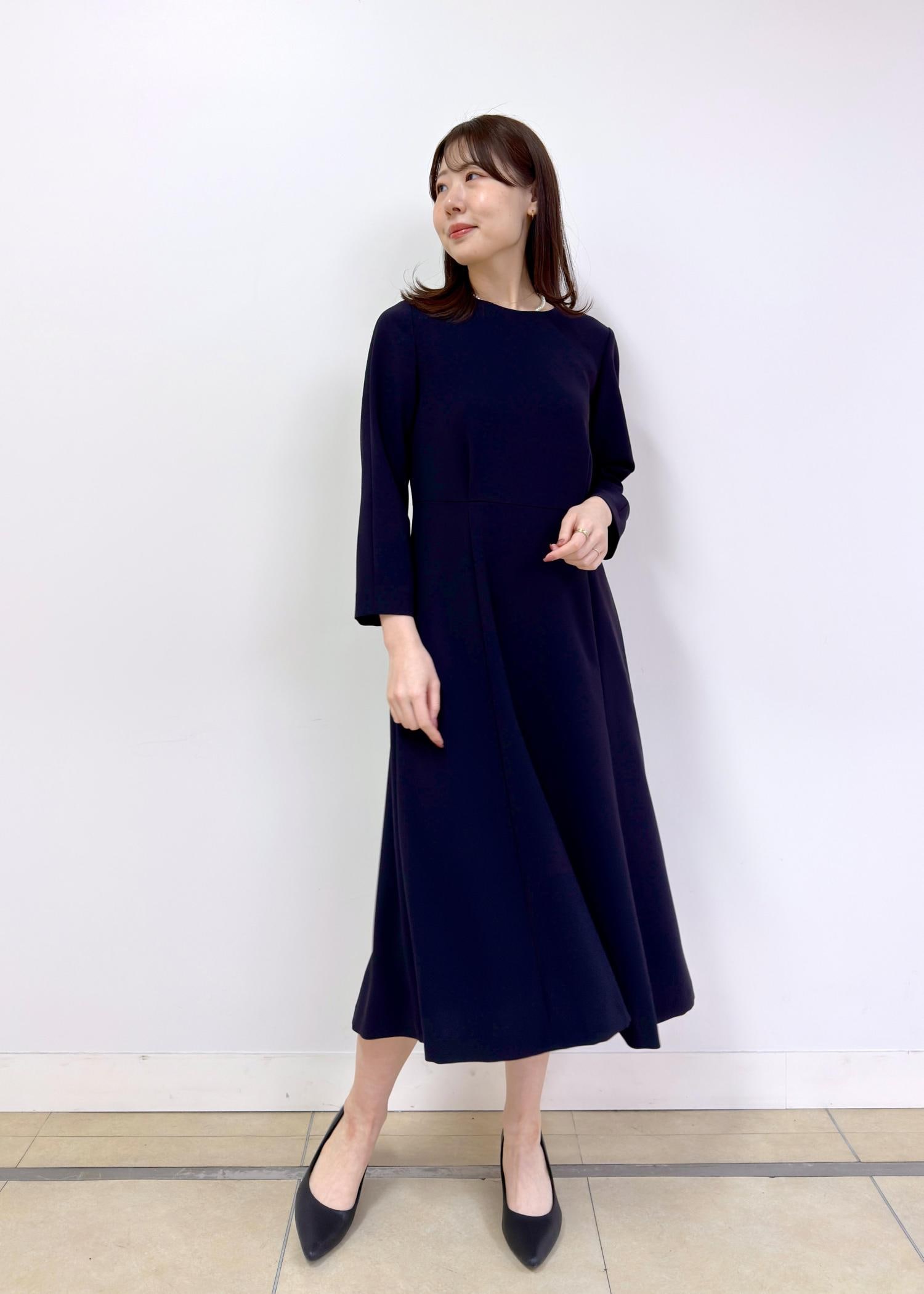 ROPÉトリアセダブルクロス セミフレアーワンピース/イージーケア・セットアップ対応・26SSネイビー / 38¥33,000レビュー身長165cmで38サイズを着用しています。