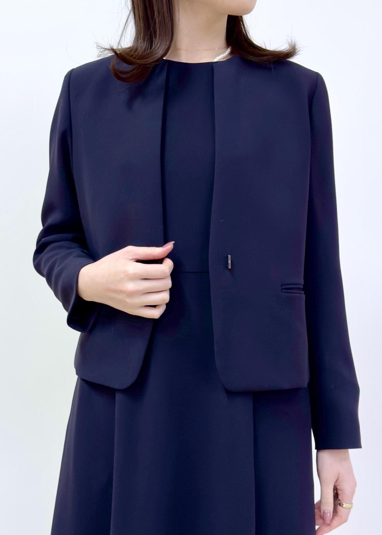 セレモニーのセットアップとしても定番のジャケット×ワンピーススタイルです。
