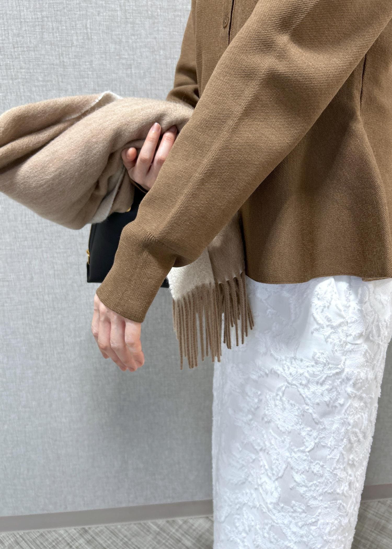 ROPÉラムウールリバーシブルストールベージュ / F¥9,900レビューサイズ感は221×71cmの大判サイズです。