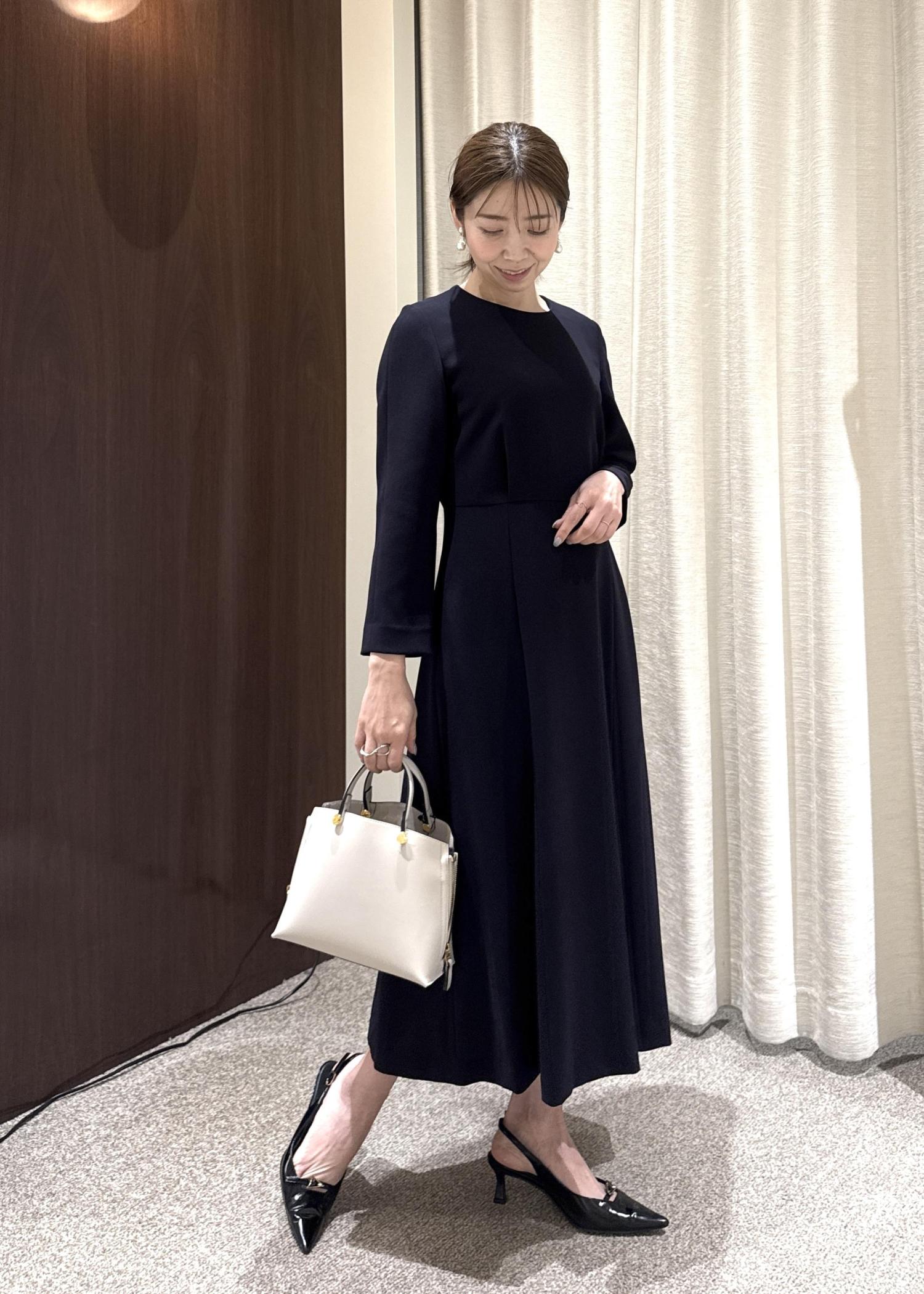 ROPÉトリアセダブルクロス セミフレアーワンピース/イージーケア・セットアップ対応・26SSネイビー / 36¥33,000レビュー155㎝の身長で着丈はふくらはぎが隠れる着丈。
