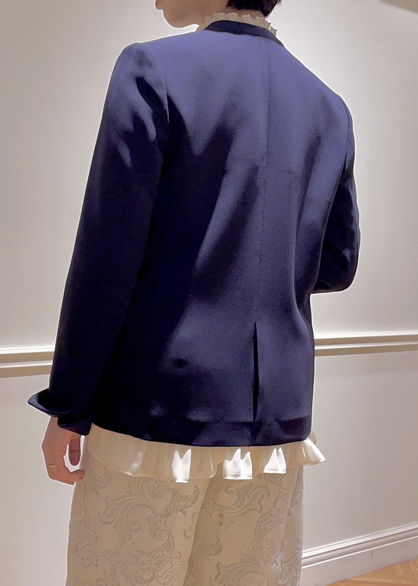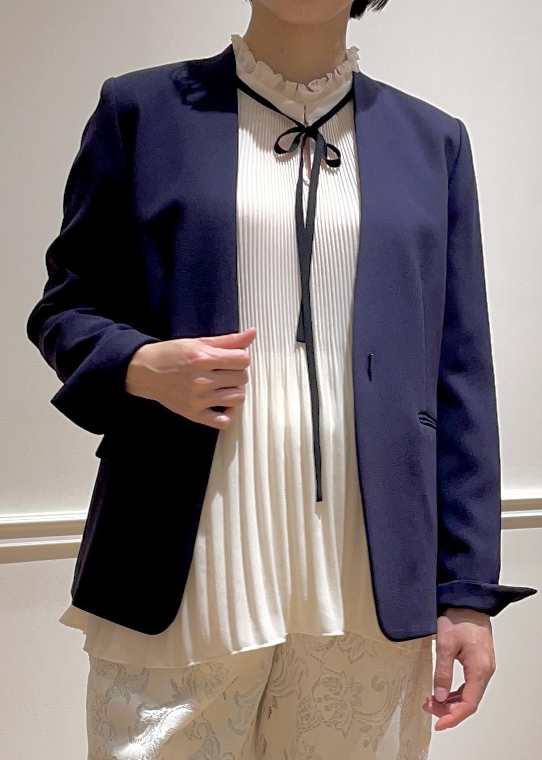 首元の襟のシルエットがとても綺麗で、上品なノーカラーです。