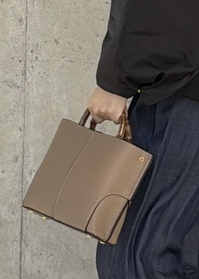 バンブーハンドルと、取り外し可能な付属ショルダーの2WAYの持ち方が可能で洋服に合わせて持ち方を変えていただけます。底鋲付きでしっかりと自立するのも嬉しいポイントです。