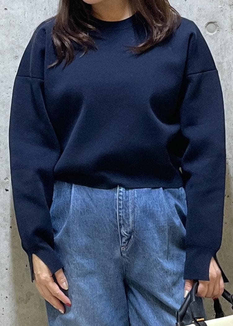 ROPÉスウェットライクコンパクトニットプルオーバー/イージーケアネイビー / F¥16,500レビュー腰位置で止まるほどのコンパクトな丈で、低身長の方にオススメのトップスです。