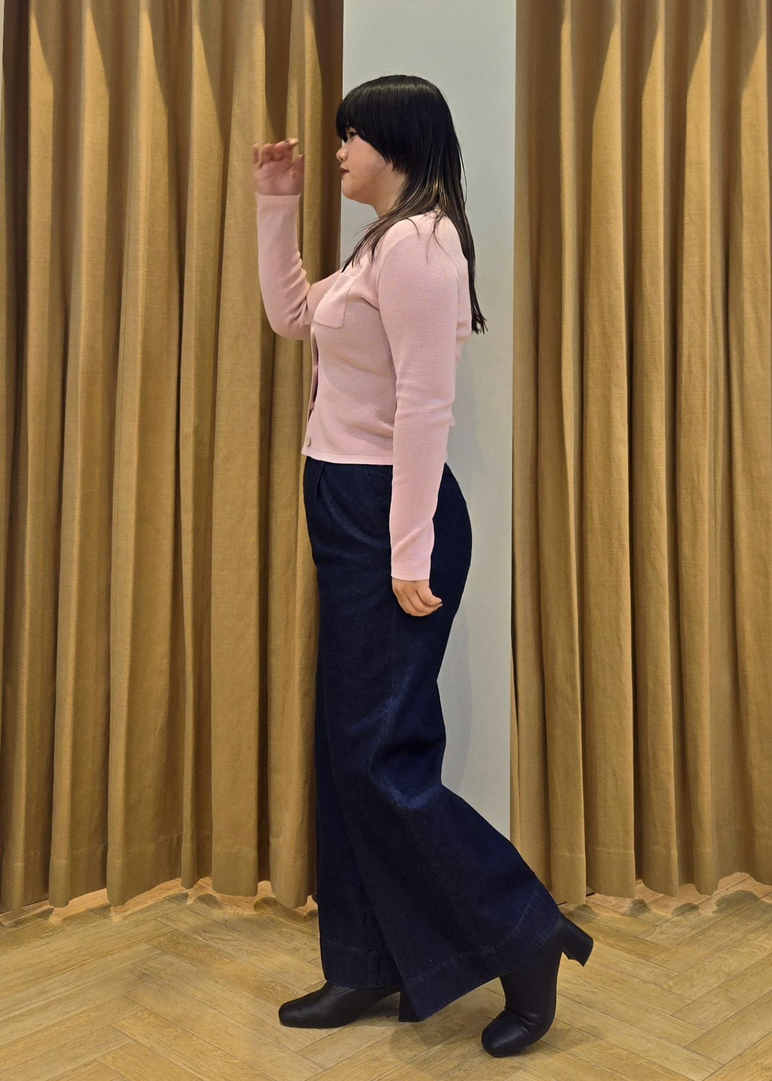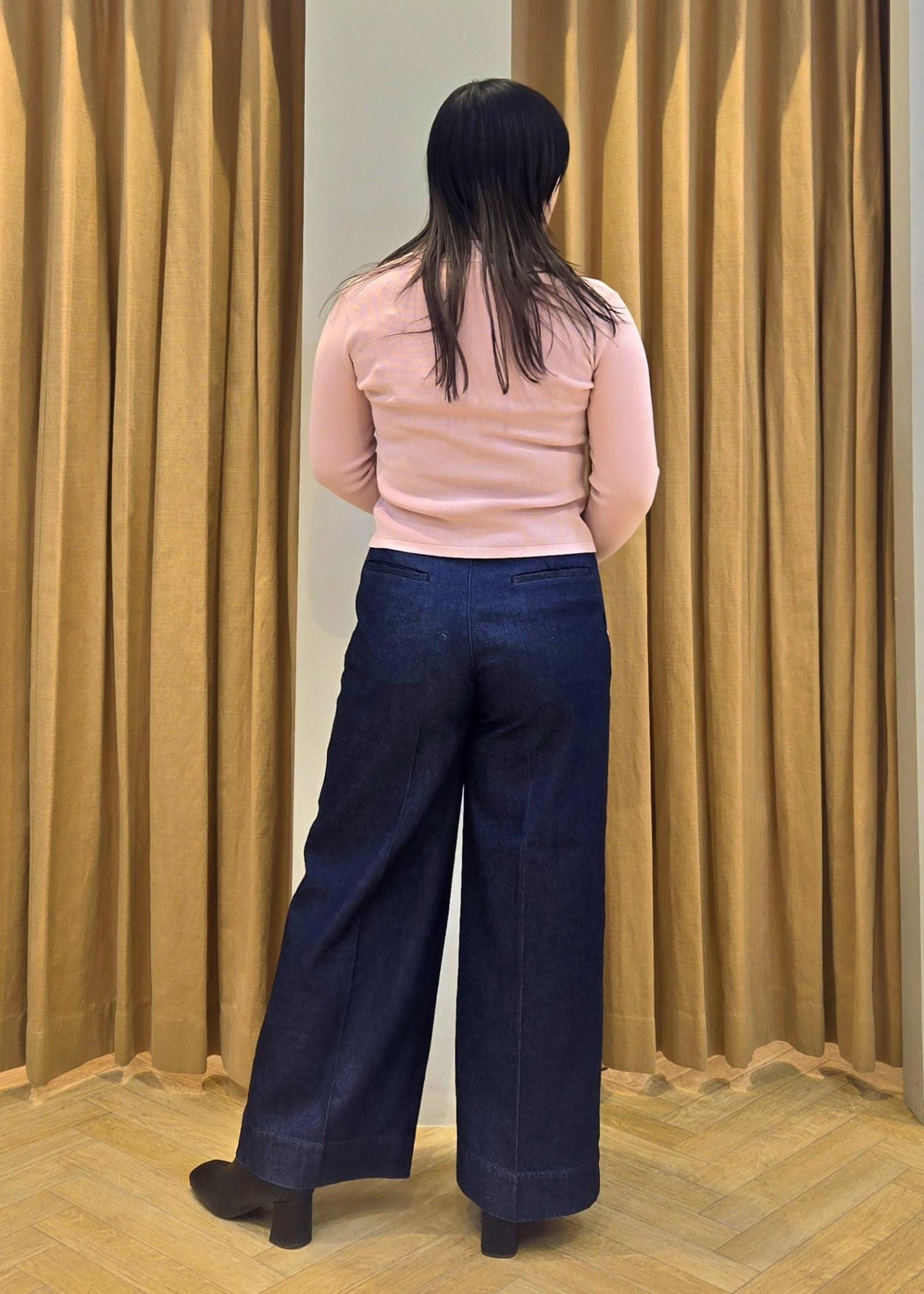 ROPÉテンセルデニムストレートワイドパンツ/イージーケア・セットアップ対応ネイビー / 40¥29,700レビュー少しハイウエストではけるので腰位置が高く見えスタイルアップして見せてくれます。