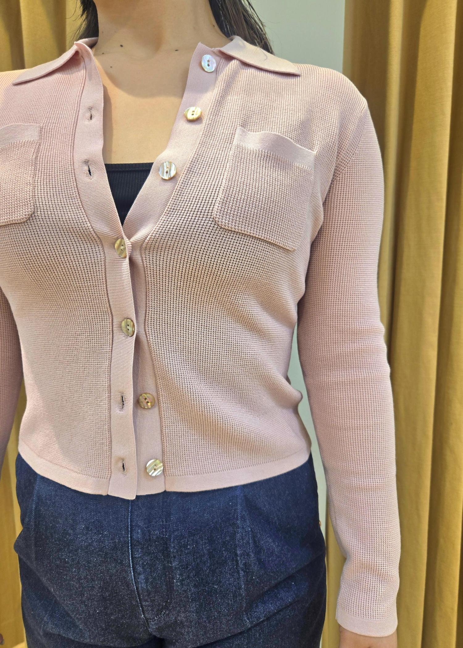 ROPÉポロニットカーディガン/イージーケアピンク / F¥19,800レビュー全部閉めてトップスとしてもカーディガンとしても着られるので気温調節が難しい時期にぴったりです。
