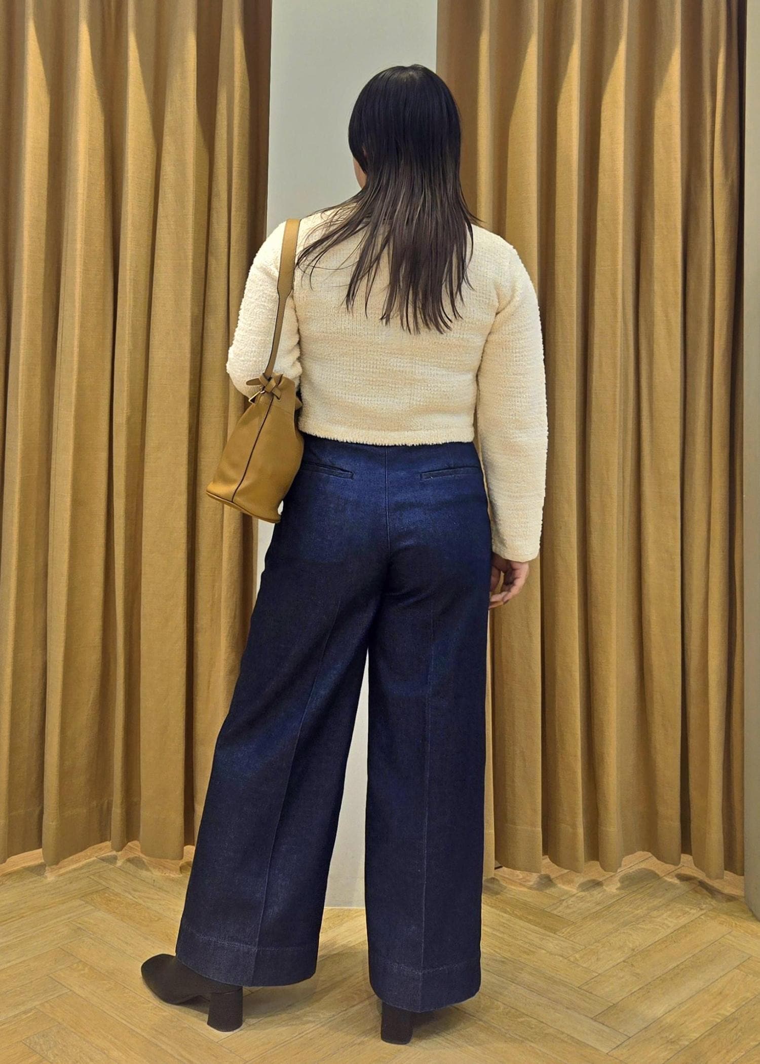ROPÉテンセルデニムストレートワイドパンツ/イージーケア・セットアップ対応ネイビー / 40¥29,700レビュー少しハイウエストではけるので腰位置が高く見えスタイルアップして見せてくれます。