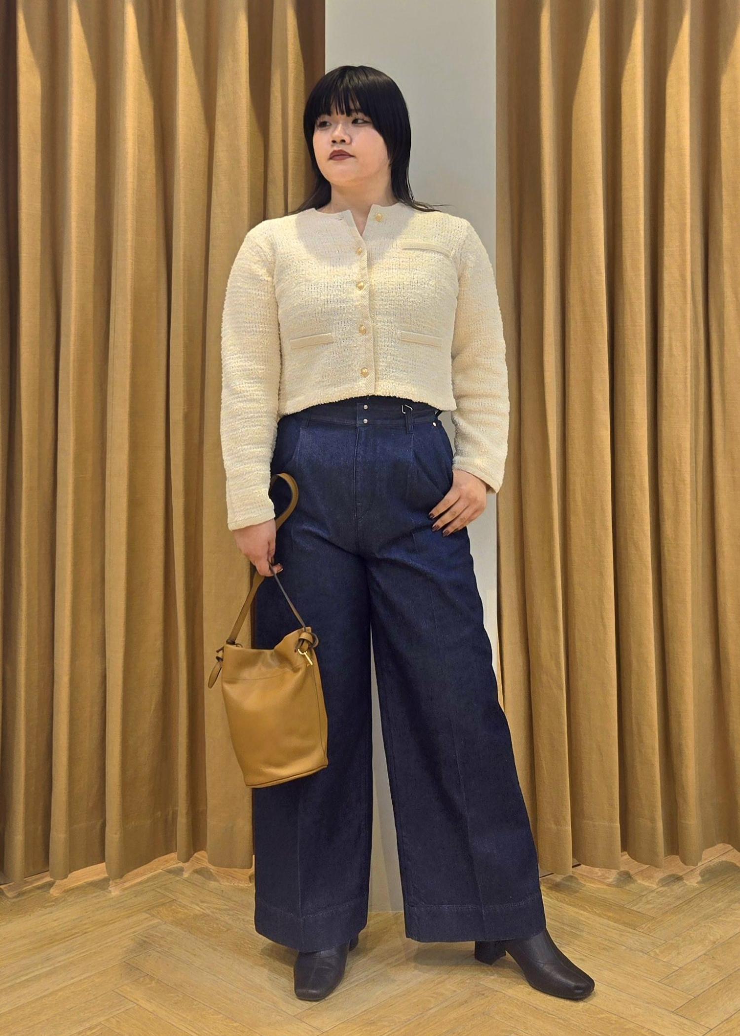 ROPÉツイードニットショート丈カーディガン/イージーケアキナリ / F¥26,180レビューコンパクトな形なのでボトム合わせやワンピースとのバランスがとりやすいです。