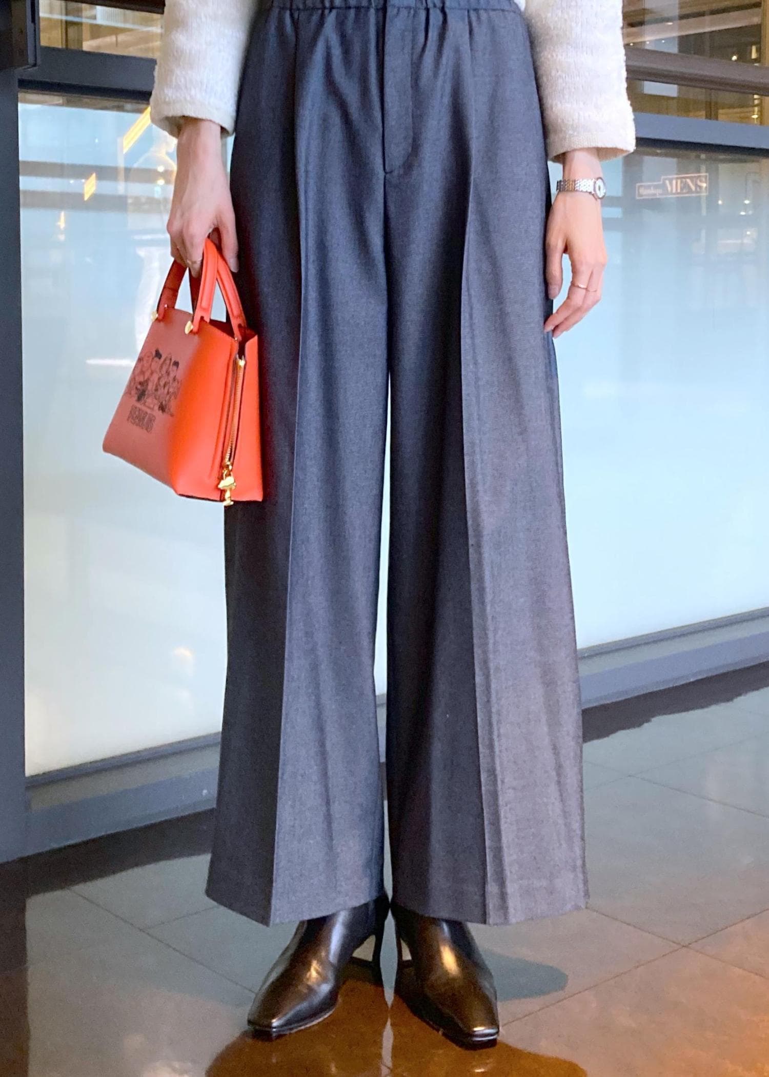 合わせるトップスによってオンオフ両方使いでき、同素材のジャケットとセットアップ着用もおすすめです◎ -