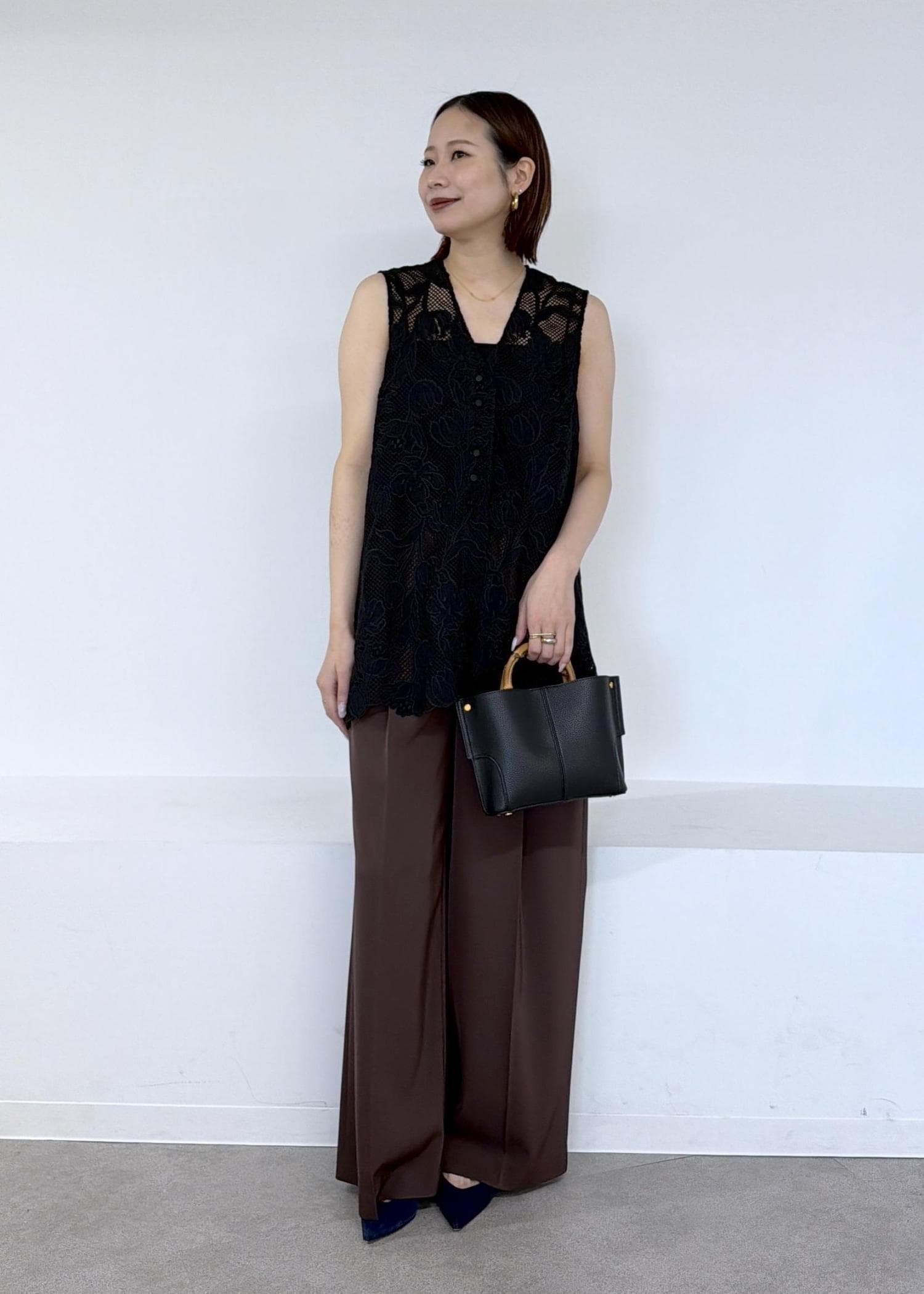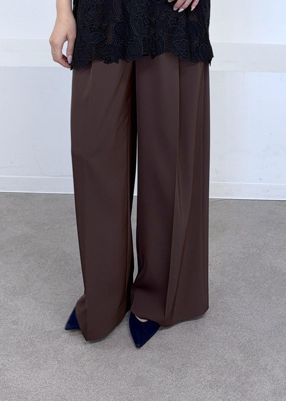 予約ROPÉイージータックワイドパンツ/イージーケア・セットアップ対応ダークブラウン / 38¥25,300レビュー161cmで38サイズ着用。