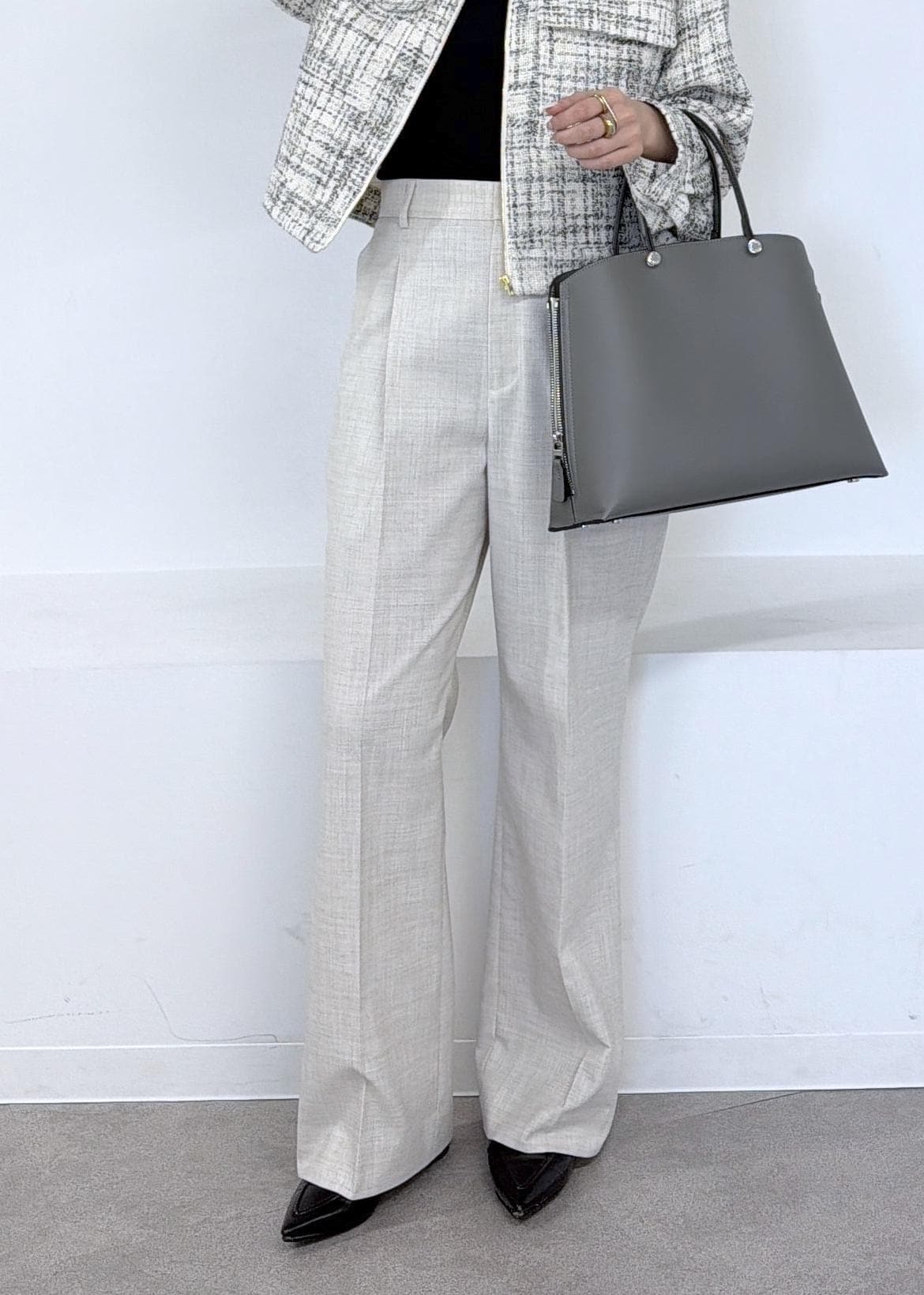 セミフレアなパンツを合わせることで縦のIラインがすっきりと見えスタイルアップが叶うコーディネートにしました!