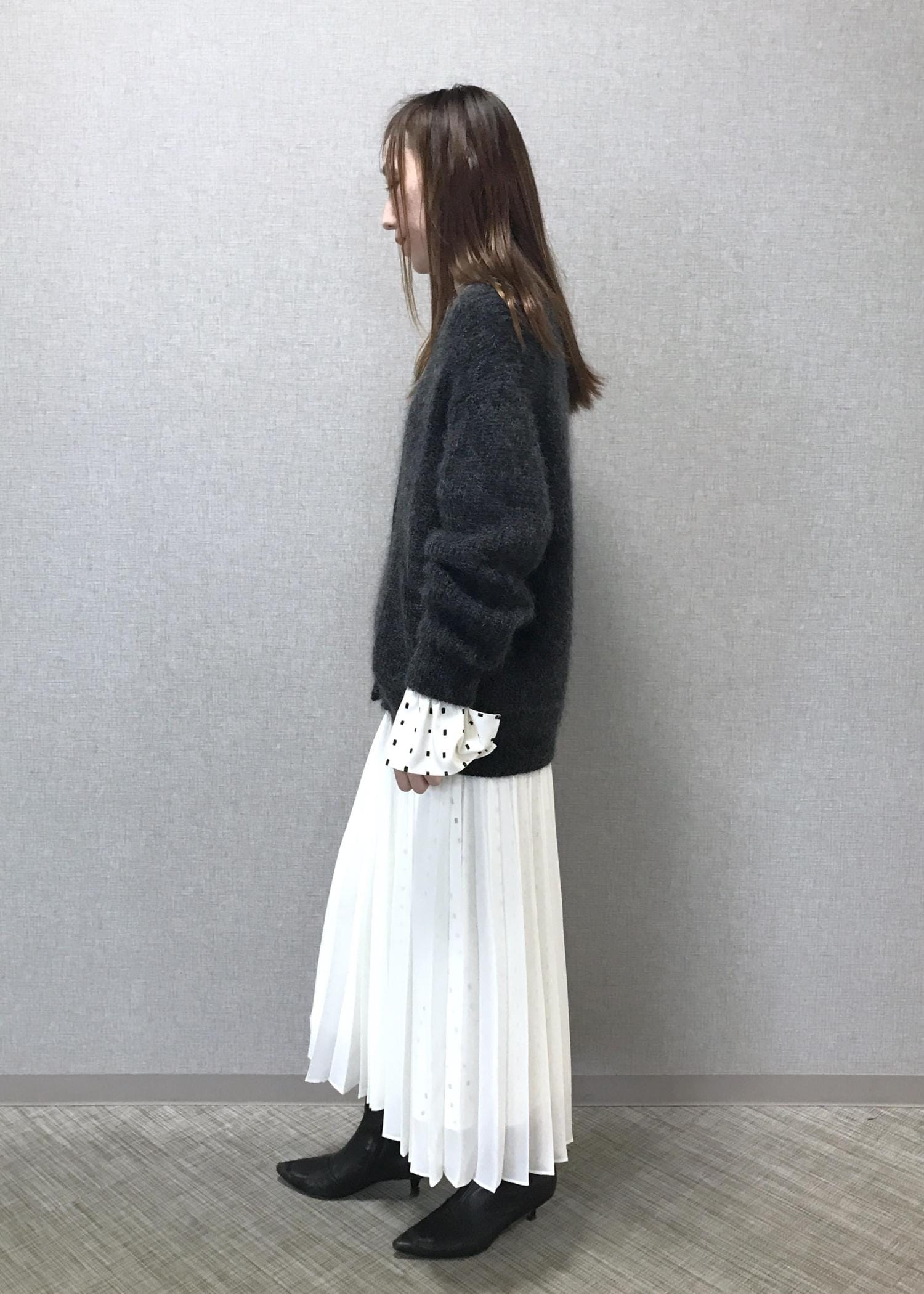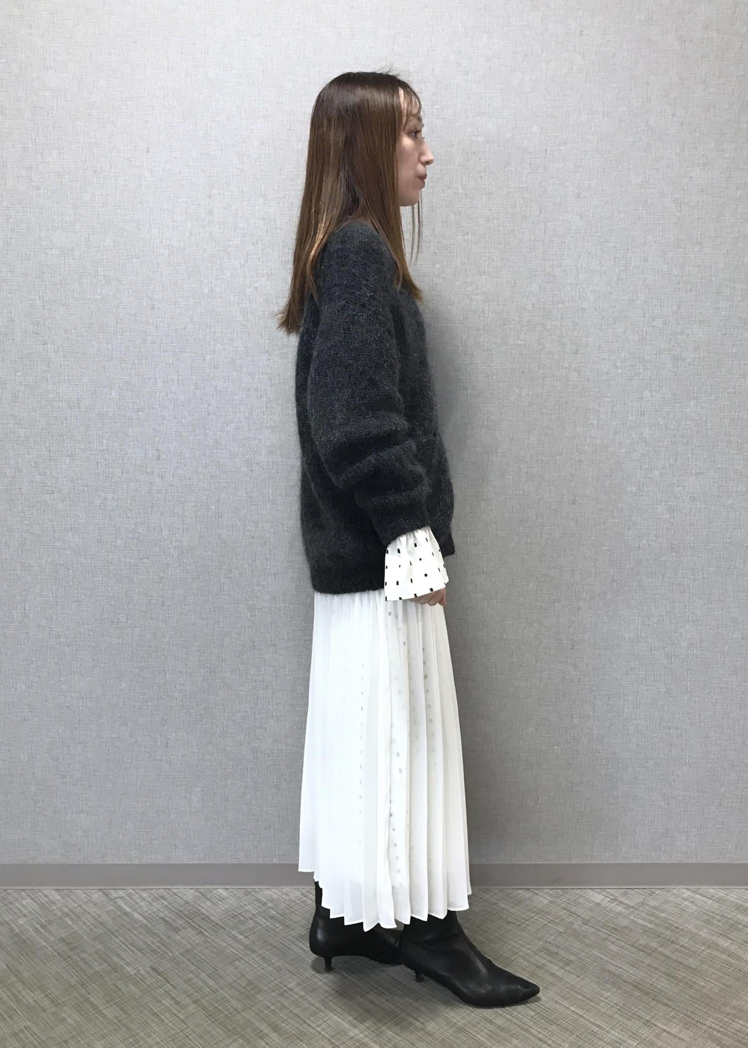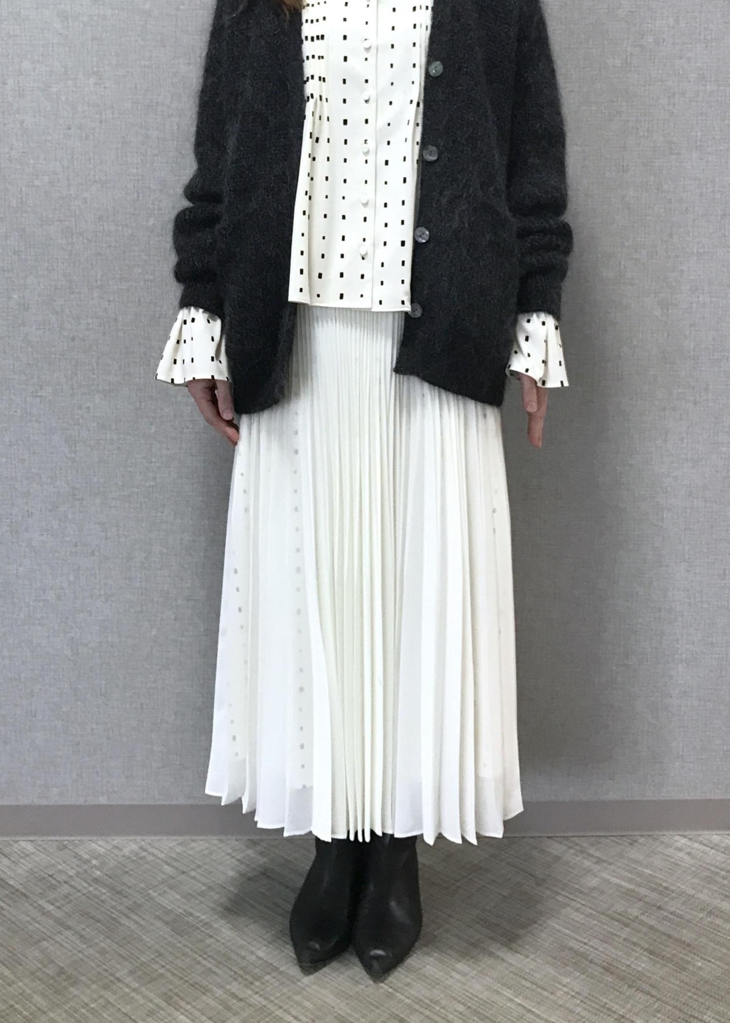 ROPÉスクエアドットプリントププリーツスカートキナリ / 36¥18,150レビューさりげなく透けるドット柄の透け感や、プリーツのボリューム感を楽しめるスカートです。長さも合わせやすくオススメです。