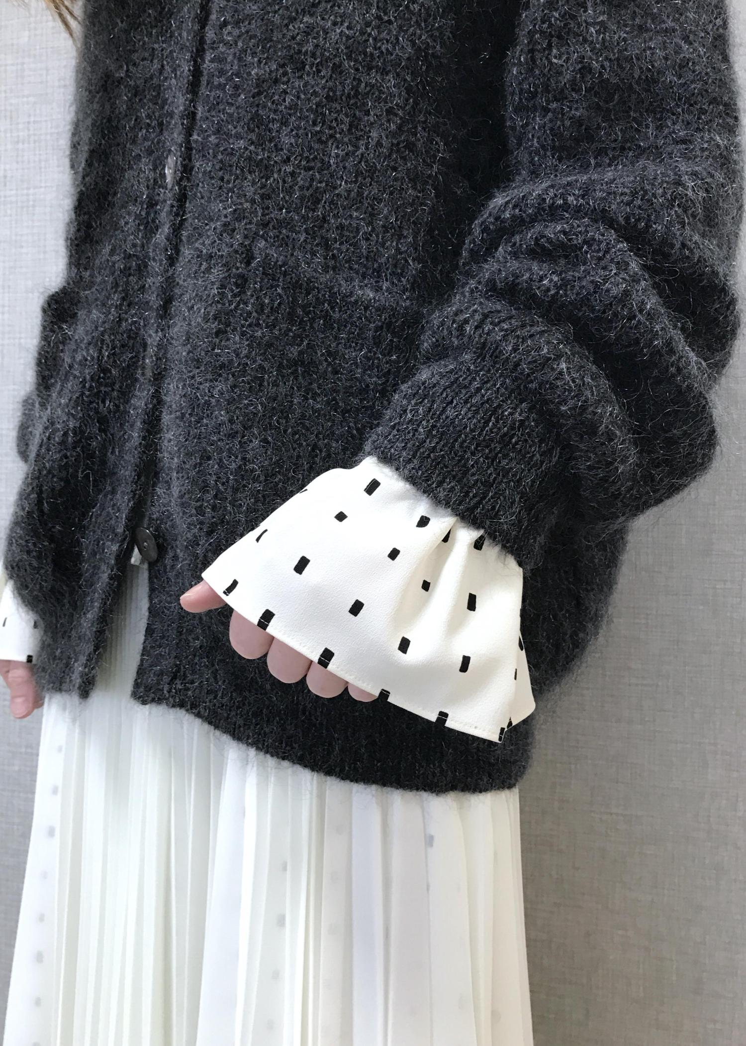 ROPÉスーパーキッドモヘヤVネックカーディガン/イージーケアチャコール / F¥29,260レビュー身頃やアームがゆったりめでインナー合わせを気にせず羽織れます。