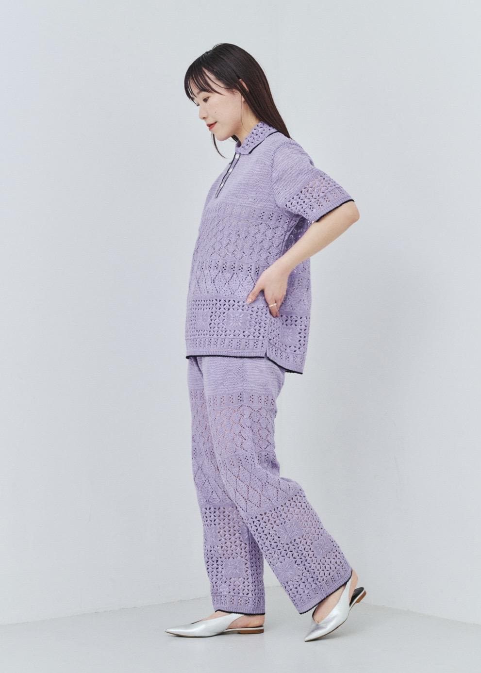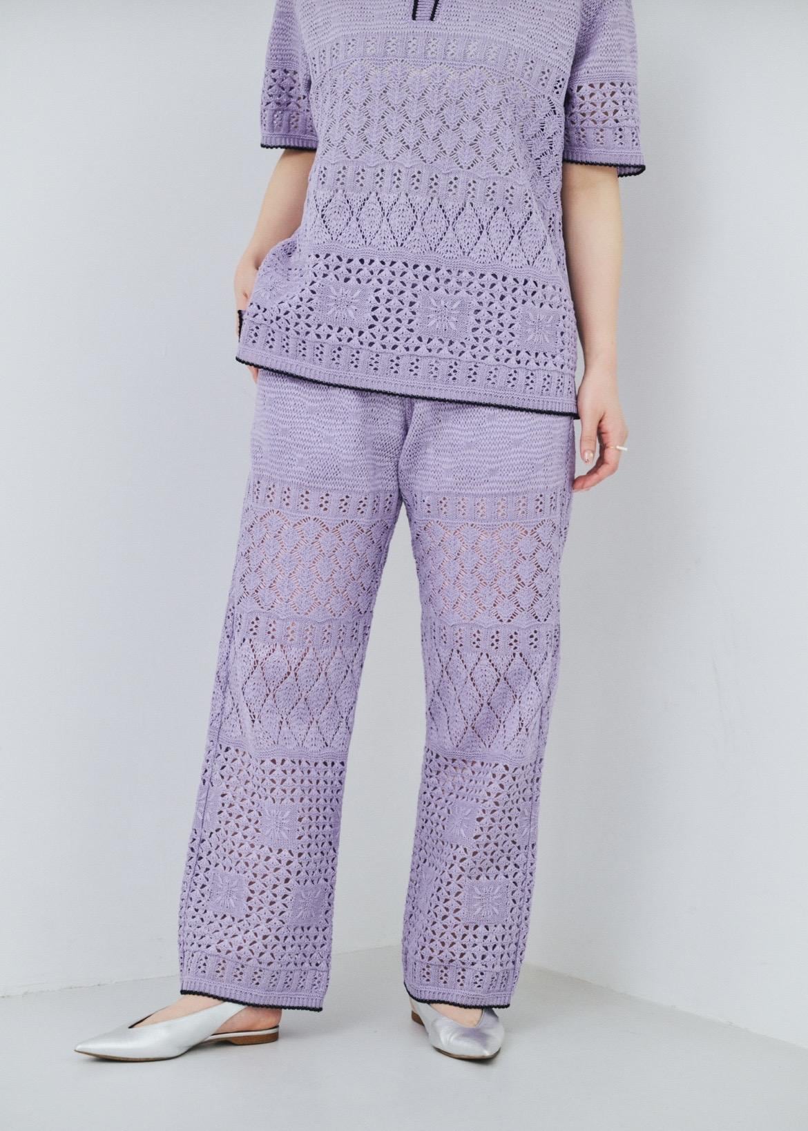 予約ROPÉ SELECT【COOHEM】SUKASHI EMBOSSED KNIT PANTS/イージーケア・セットアップ対応ラベンダー / F¥42,900レビュー着丈はくるぶしにかかるくらいでフラットシューズでもちょうどよく着られました!