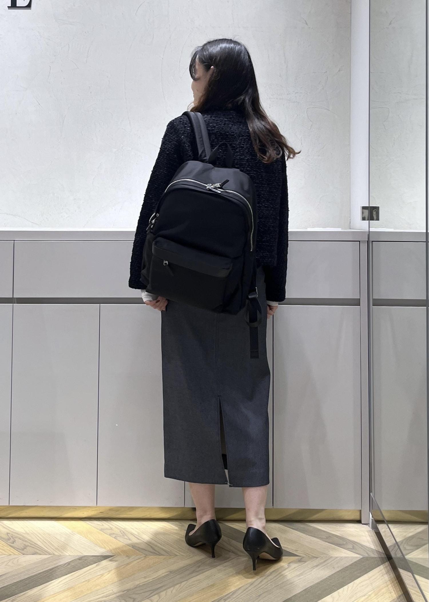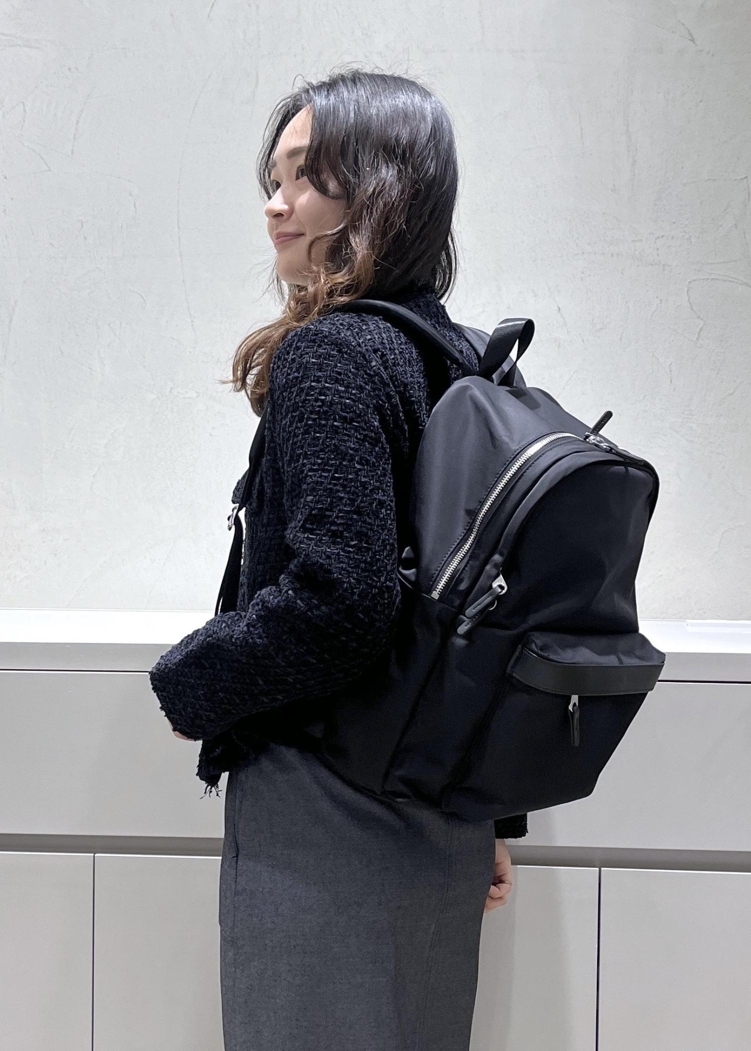 14インチPCが入るサイズ。22Lと大容量でありながら、品のある素材感とデザインです◎