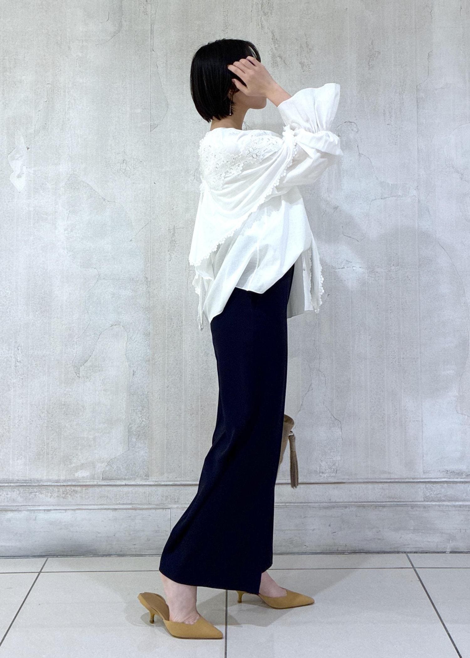 2026ssのアイテムが続々と店舗へ入荷して参りましたので、今回はサロンアダムエロペの新作ブラウスを主役にきれいめスタイルでまとめてみました!