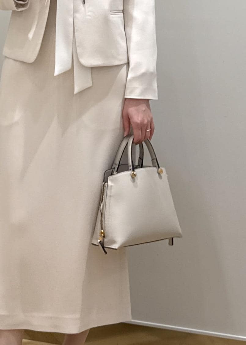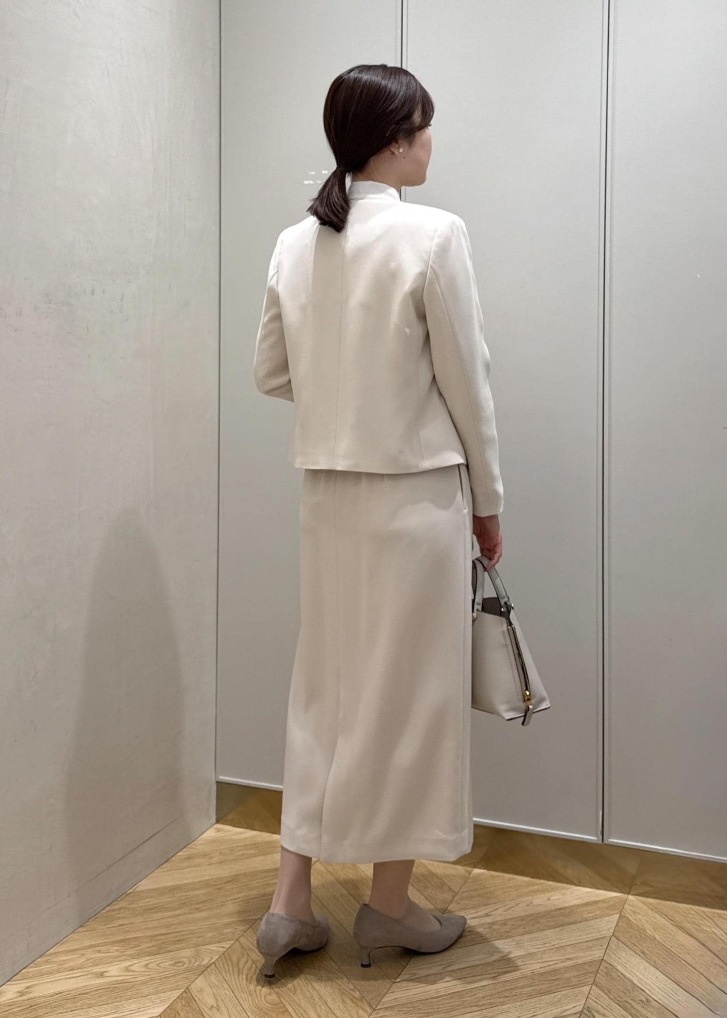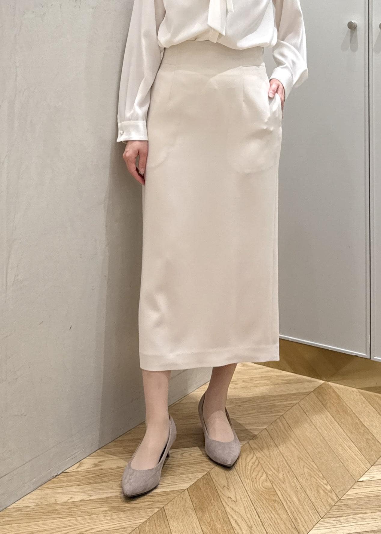 ROPÉトリアセダブルクロス ハイウエストタイトスカート/イージーケア・セットアップ対応・26SSベージュ / 38¥25,300レビュー身長160cm、38サイズ着用。