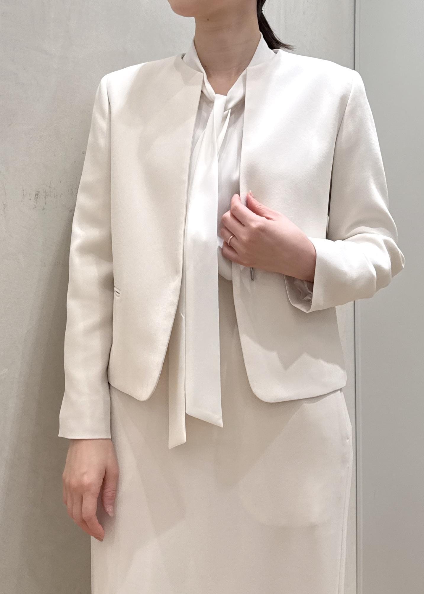 ROPÉトリアセダブルクロス クルーネックジャケット/イージーケア・セットアップ対応・26SSベージュ / 36¥35,200レビュードライタッチでシワになりにくく、
