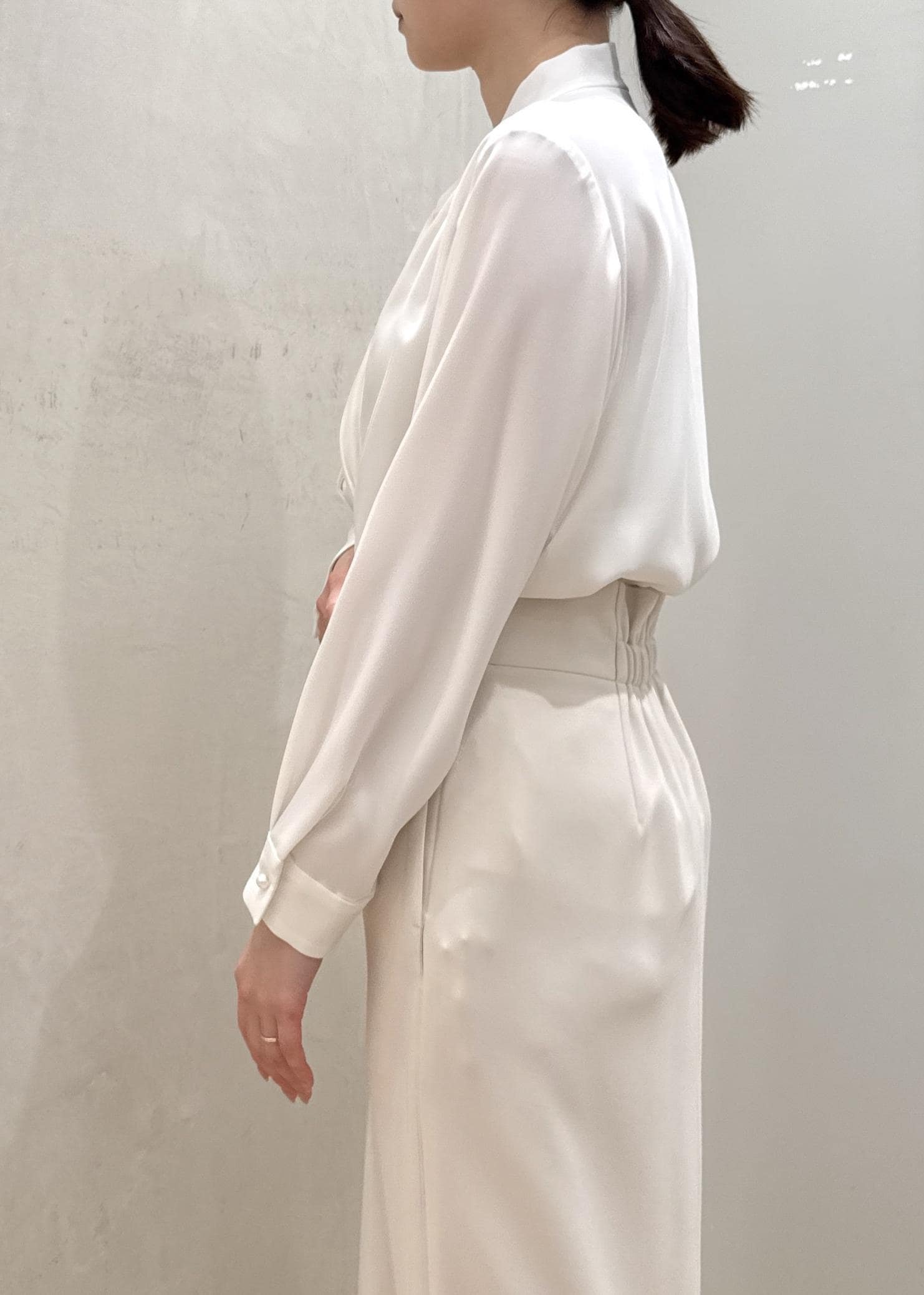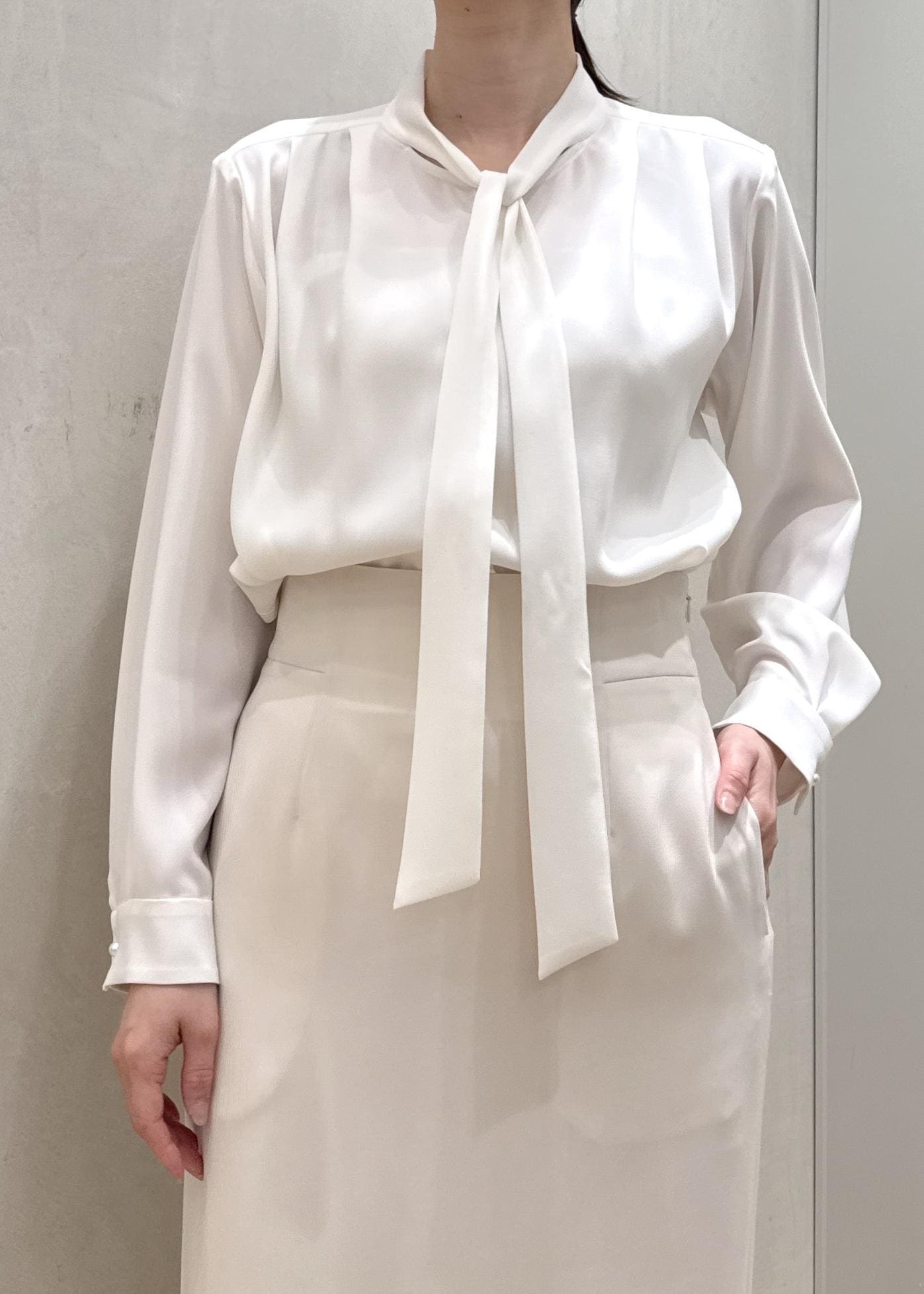 ROPÉボウタイブラウス/イージーケア・26SSホワイト / F¥22,000レビューややゆとりがあるサイズ感で、ヒップにかかる長さです。シワになりにくく、ご自宅でのお洗濯可能。