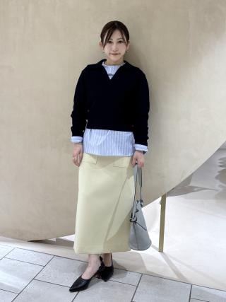 まだ寒い時期でも、春らしいコーディネートを楽しみたい方へおすすめです!トップスは、肉厚な綿素材のニットとブラウスの重ね着で温かさを保ちつつ、きちんと感を出す組み合わせにしています。