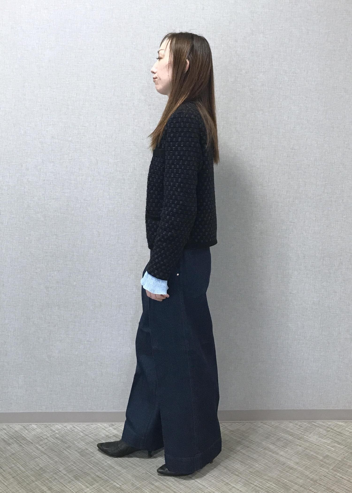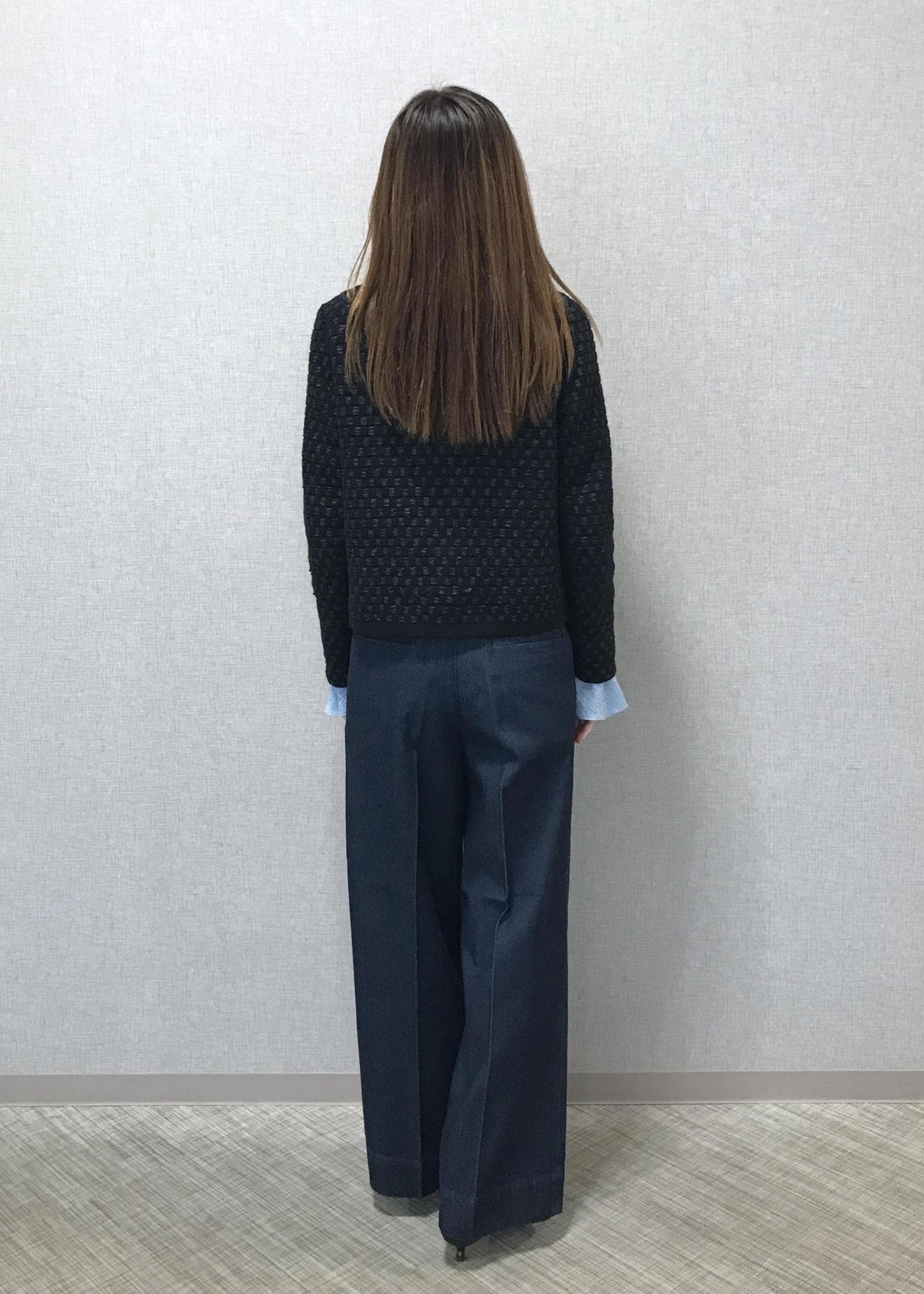 ROPÉテンセルデニムストレートワイドパンツ/イージーケア・セットアップ対応ネイビー / 36¥29,700レビューウエストはジャスト位置で細めです。ヒップにかけたタックは深すぎずで、裾までスッキリ見えるラインです。