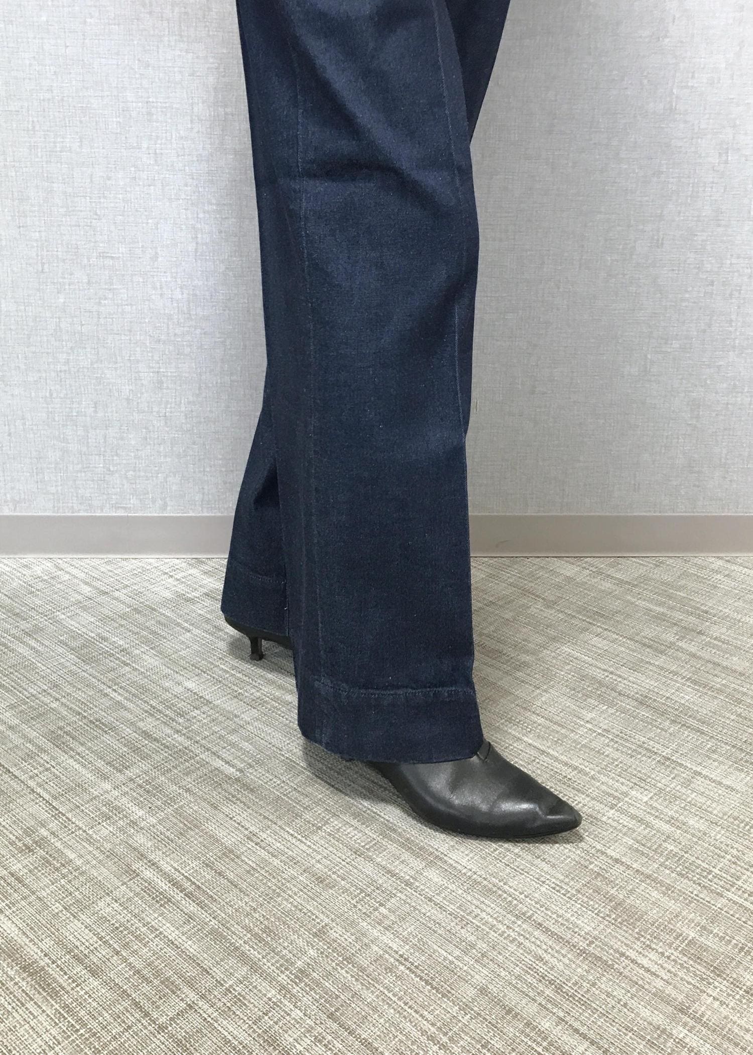 今季もワイドラインがトレンドのデニムをキレイめにはけるスッキリラインで、特にネイビーはツィードやブラウスなと華やかなトップス合わせともマッチして、カジュアルと両用楽しみやすいお色味です。